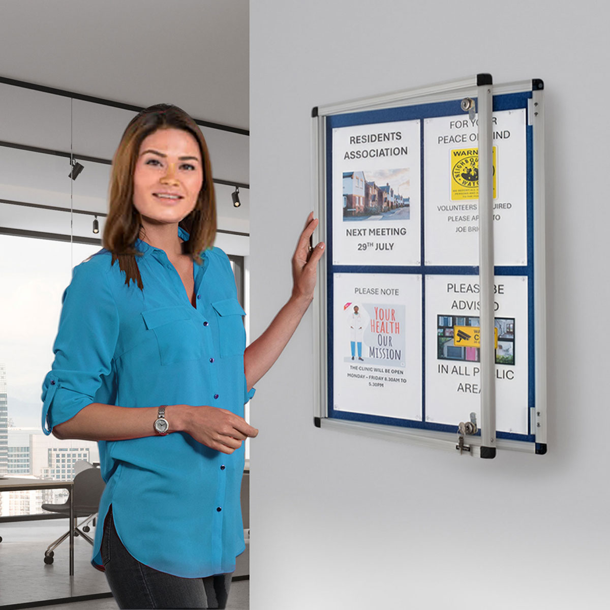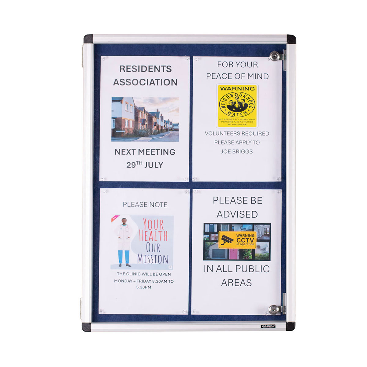 Almost entirely made from recycled and recyclable materials, these boards are assembled in the UK to the highest standards. They come equipped with quality hinges, matching locks, full-length glazing bars, and shatterproof doors. The side-hinged doors with 2 identical locks are designed to protect displayed information from casual interference.