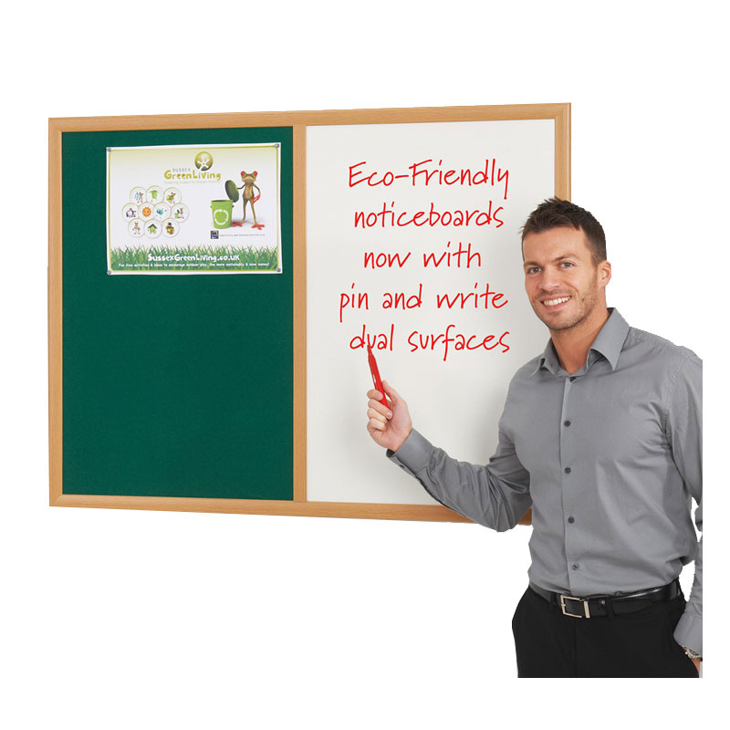 Eco- Friendly Dual Noticeboard with Deluxe Light Oak Effect Frame