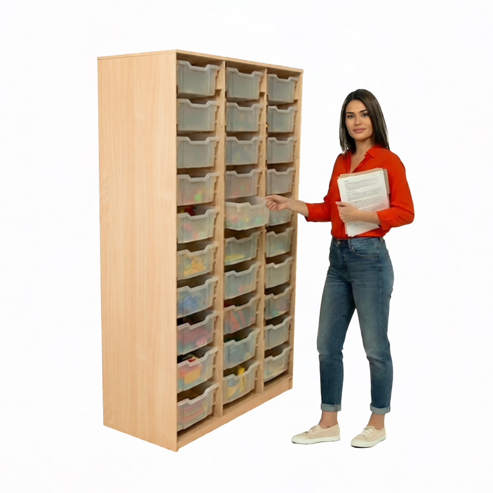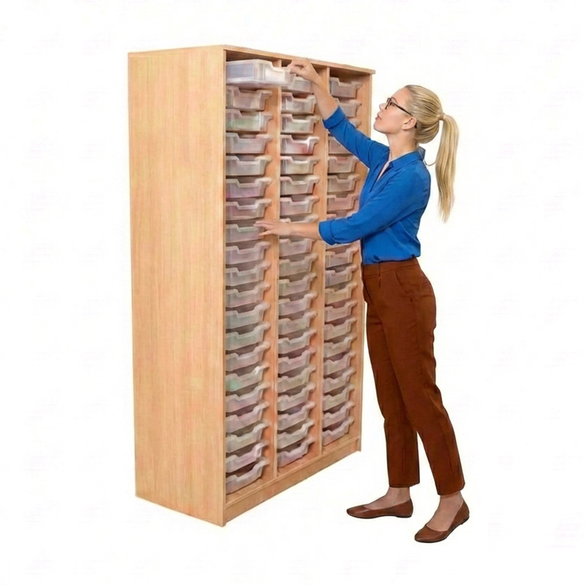 Large Cupboard - with shelves and traysOur Locking storage cupboard is available with either 18 shallow or 9 deep Gratnell slide-out trays, featuring fitted nylon runners. See the drop-down menu for Tray colour.The cupboard comes in a selection of 11 colour options, including beech and maple finishes to suit your preferences. Dimensions (H)1800 x (W)1045 x (D)490mm. Enjoy the convenience of a fully assembeled unit, delivered directly by our own transport ** Mainland Uk only** With a 10 year guarantee and rigorous. FIRA testing behind it, you can trust in the durability and quality of this cupboard.IMPORTANT: Please note, as this item is made to order, it is non-returnable.If you have questions or need advice, please conatct us at 01539740740.