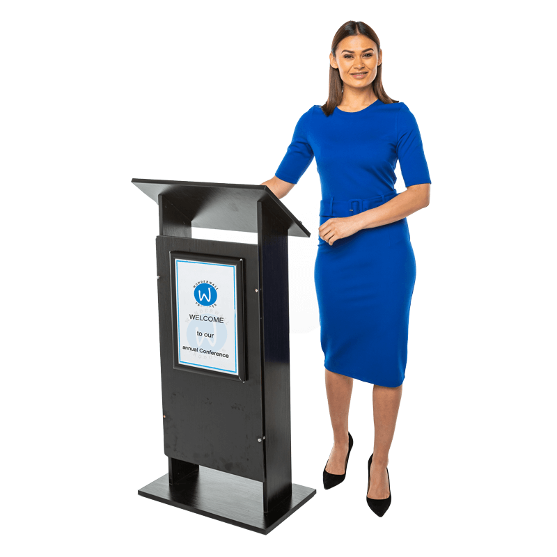 This versatile podium-style lectern is made to high standards and it is offered in two stunning MFC finishes - Black and Maple, The lectern is ideal for quick personalisation or in situations such as a hiring environment where there is seldom little time to portray your organisation's corporate identity.