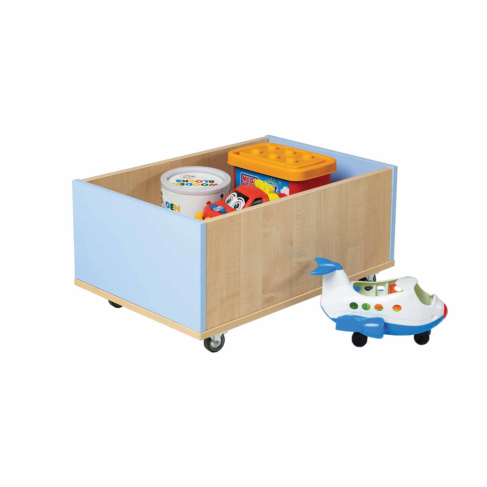 - These toy storage boxes are available in 3 sizes and have our signature Caribbean blue sides and maple back.