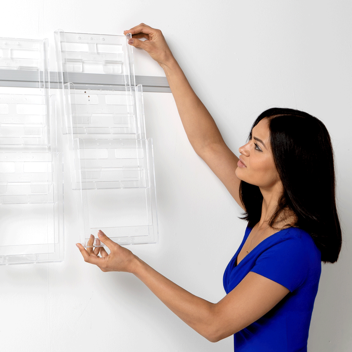 The Expanda-Stand™ Leaflet Display is a wall-mounted, space-saving, and affordable solution for showcasing leaflets and brochures. Assembling it is straightforward: simply attach the rail to the wall using the included fixings. Then, snap the holders together according to the instructions, and hang the columns on the rail.