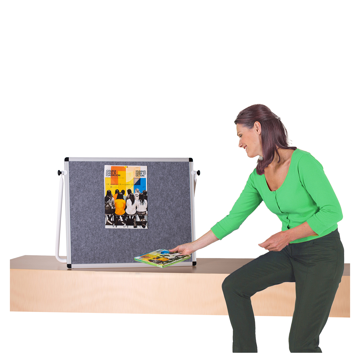 Thanks to their user-friendly design, these boards can be easily folded and stored away when not in use, making them ideal for pop-up venues. The smaller aluminium framed 500 x 600 mm board is lightweight at just 2 kg, while the larger 600 x 800 mm board is still easy to handle at 4.4 kg. Both options feature a pinnable surface that is fire-retardant, ensuring enhanced safety.