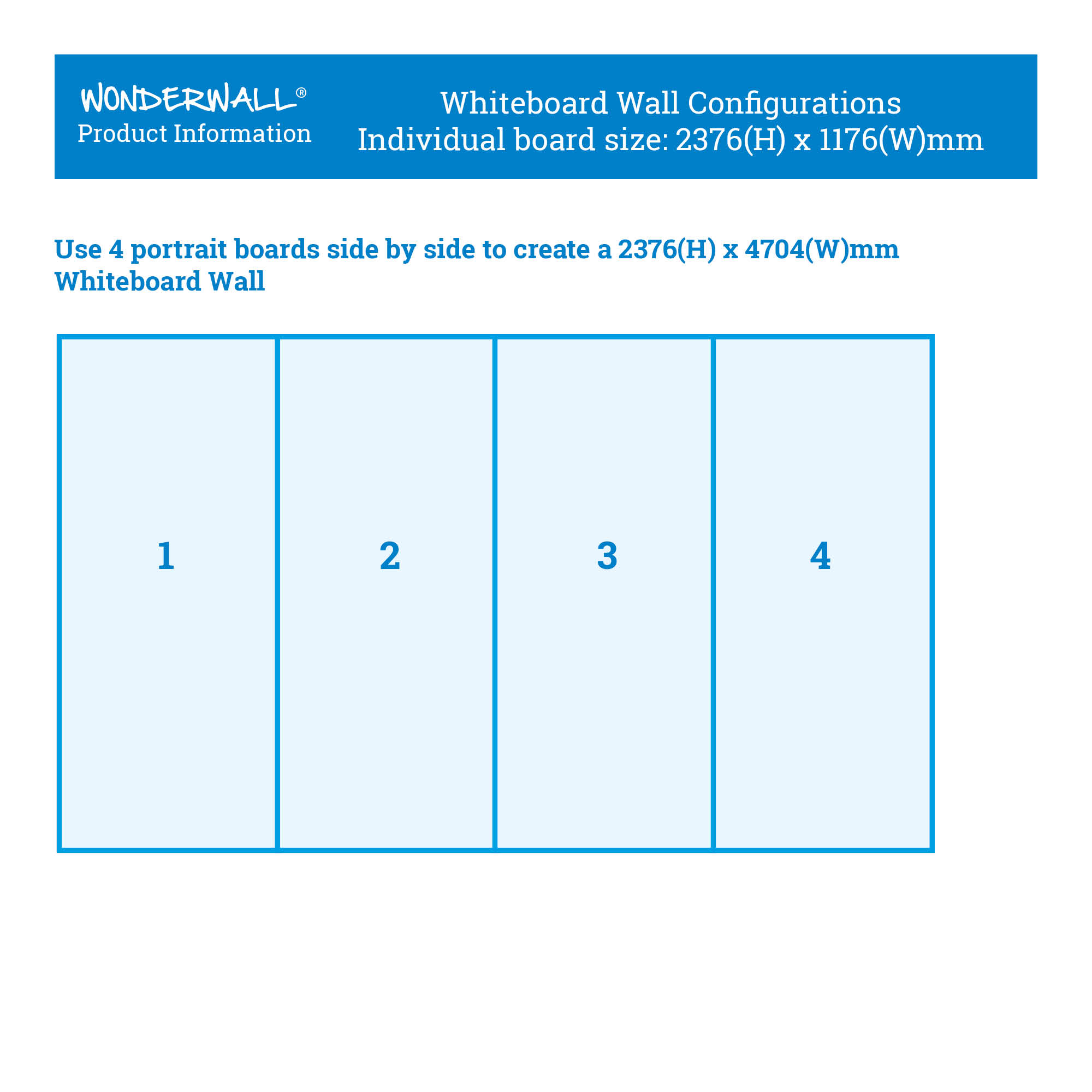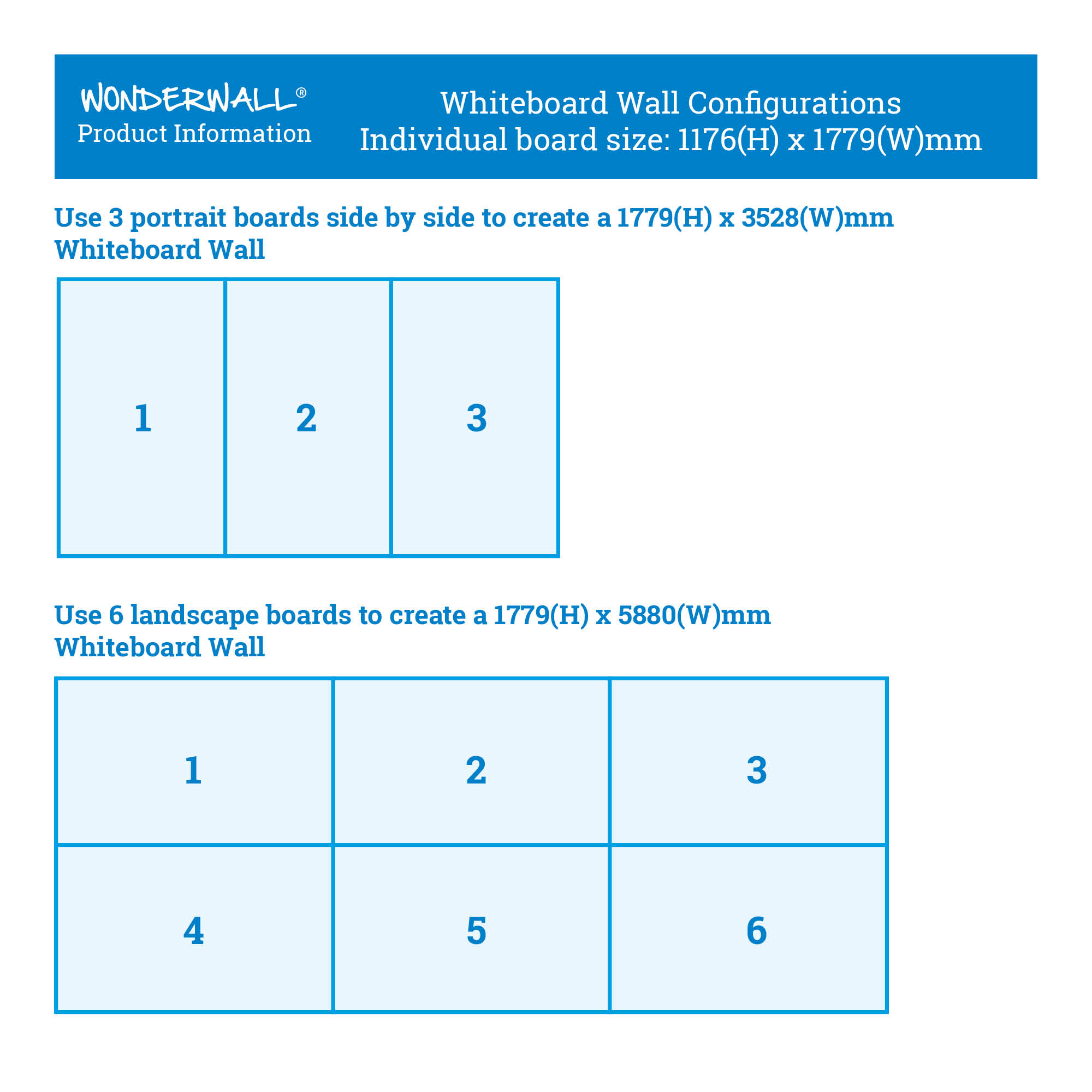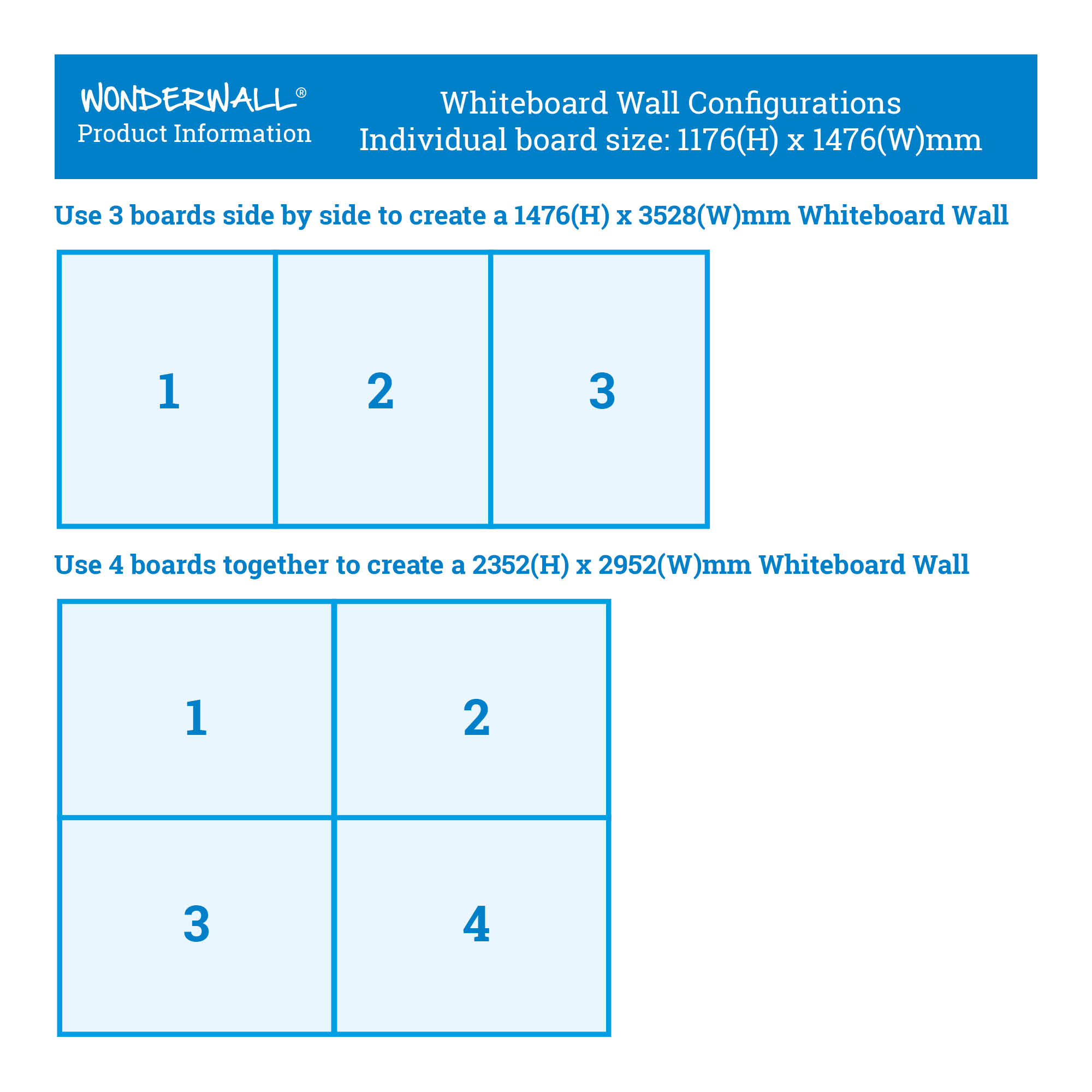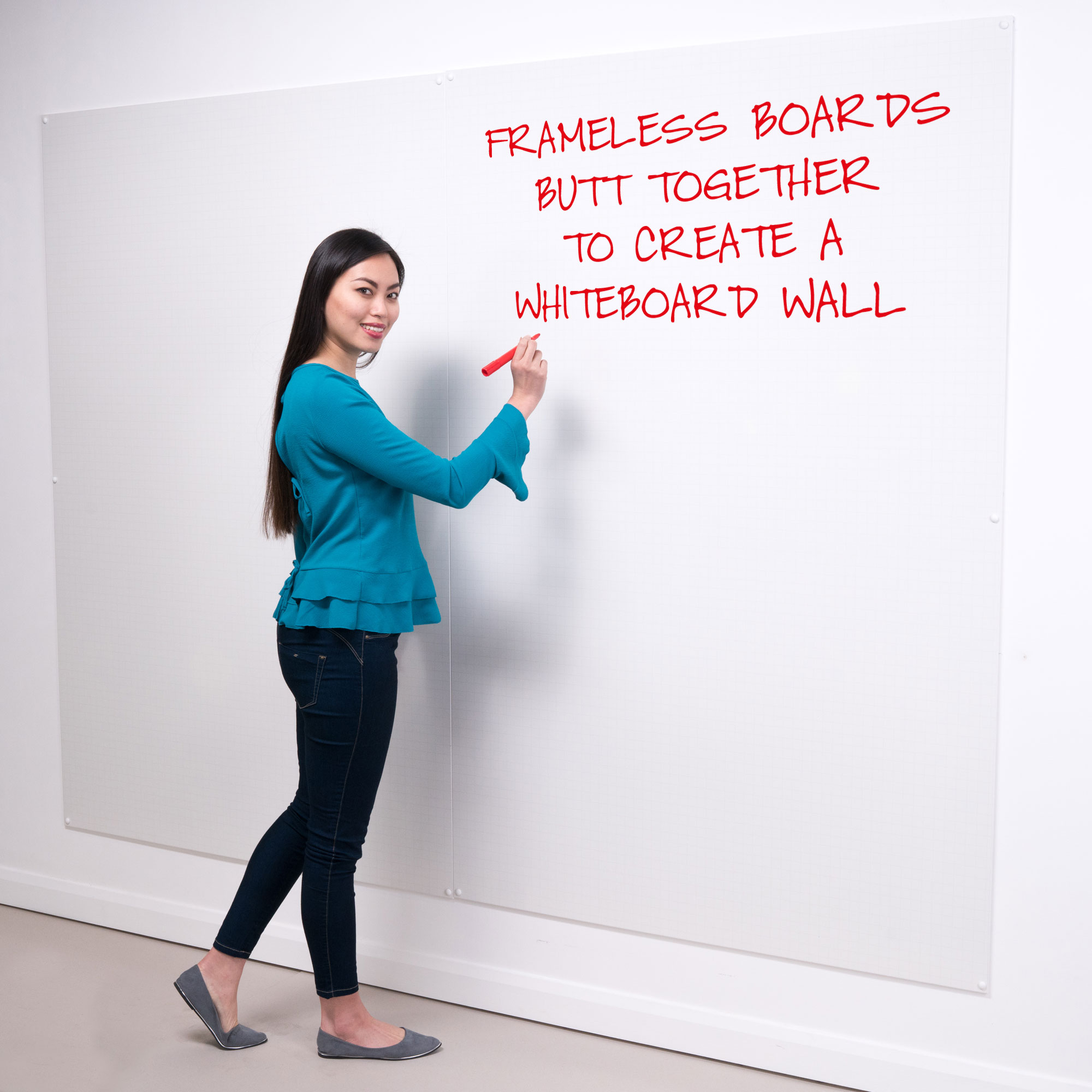 Create a continuous drywipe whiteboard wall, using these durable ABS- edged whiteboards. These boards mount flush against the wall and each other for a seamless look. Easy to install, due to the frameless design, and simple through the board fixing, with white cover caps to mask the screws.Our dual surface boards have one side plain, and the other gridded, with a 20mm feint grid. Mount to your preference.