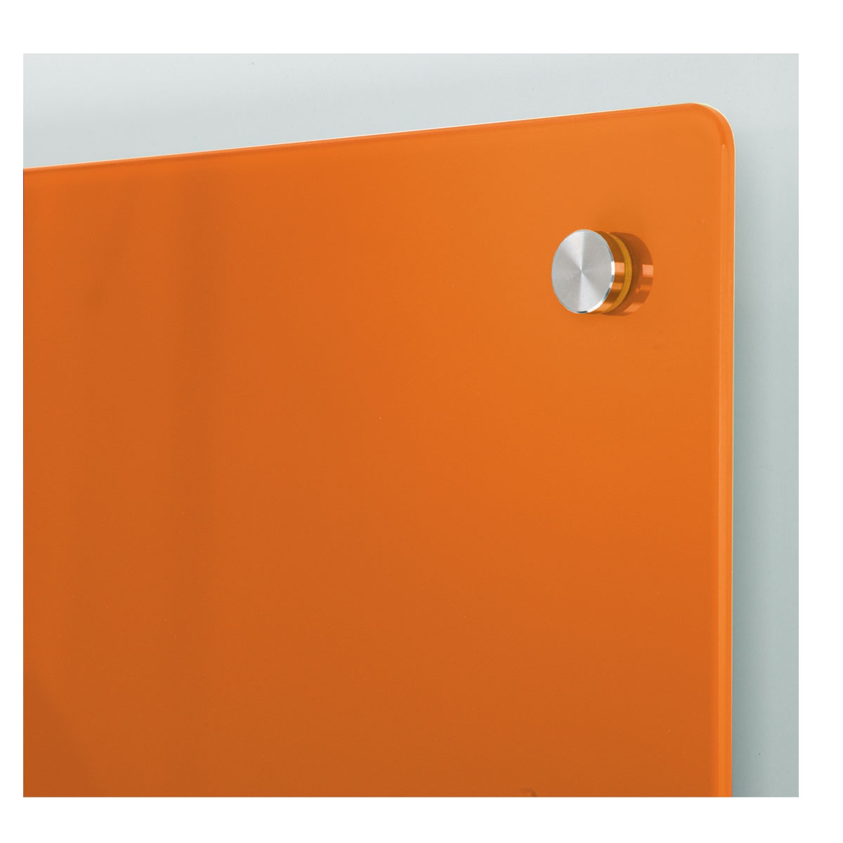 Made from toughened coloured safety glass with a steel back, these premium magnetic boards are fixed to the wall using chrome mounts which allows the board to stand slightly proud of the wall for visual impact. For use with super strength Neodymium magnets only and drywipe pens. Glass pen tray is available. *Please note; boards are a single colour, and images for representation only show shadow along the glass board.- Chrome mounts supplied