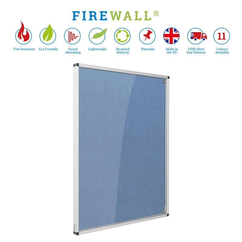 Our fire-retardant, lockable Firewall® noticeboards with side-hinged doors are designed to protect your information on display against casual interference. Firewall® is a self-coloured pinnable noticeboard core with fire-retardant properties tested and classified as Class B according to the European Reaction to fire test BS EN 13501-1.
