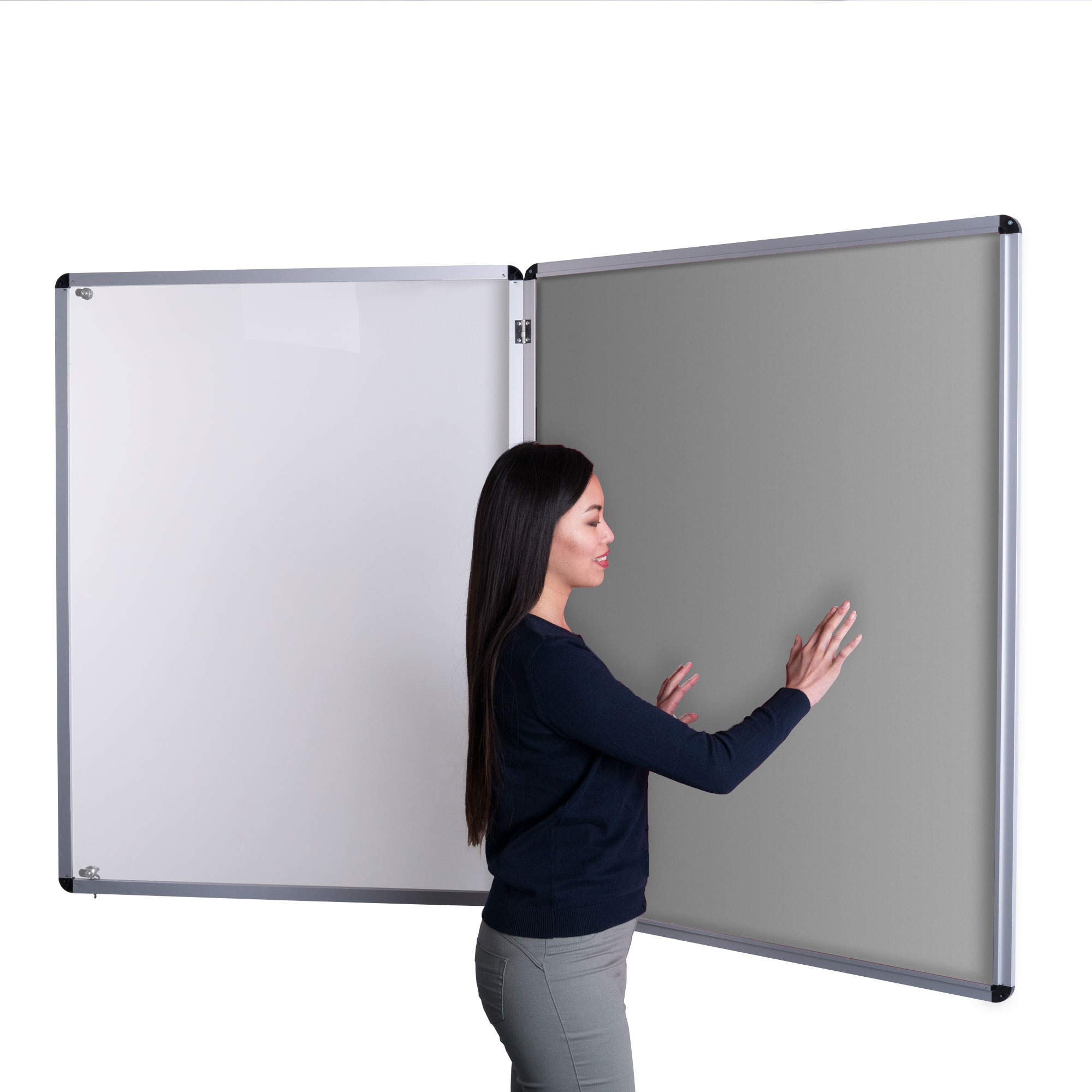 Our popular covered noticeboards are designed to prevent casual interference. Each door has 2 locks, with matching keys thus, offering easy access yet a secure solution for displaying your information. 6 sizes are available and the single door versions can be mounted portrait or landscape. The aluminium frame features rounded corners for safety and concealed corner fixings are supplied.Suitable for internal use only - these boards are not suitable for use outdoors.