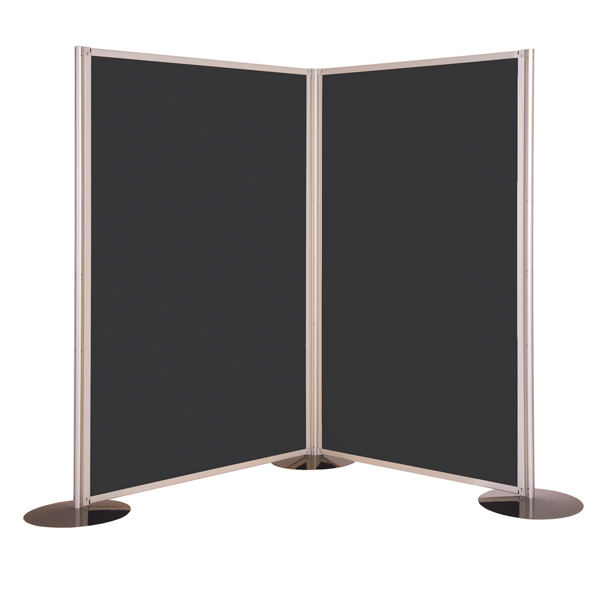 The largest panel size is 1800 x 1200mm, and these can be mounted portrait or landscape. The panels clip onto specially designed 4-way poles with circular steel bases and lock into position to prevent unintentional movement. Because of the four-way pole, it is possible to also have panels connecting at right angles thus increasing the flexibility of your chosen configuration.