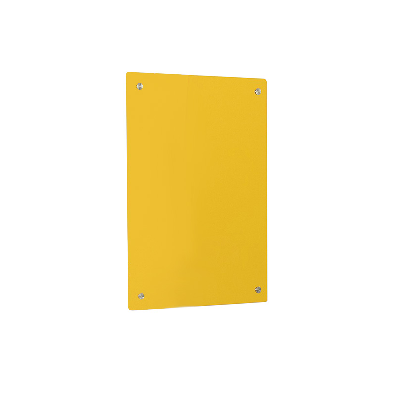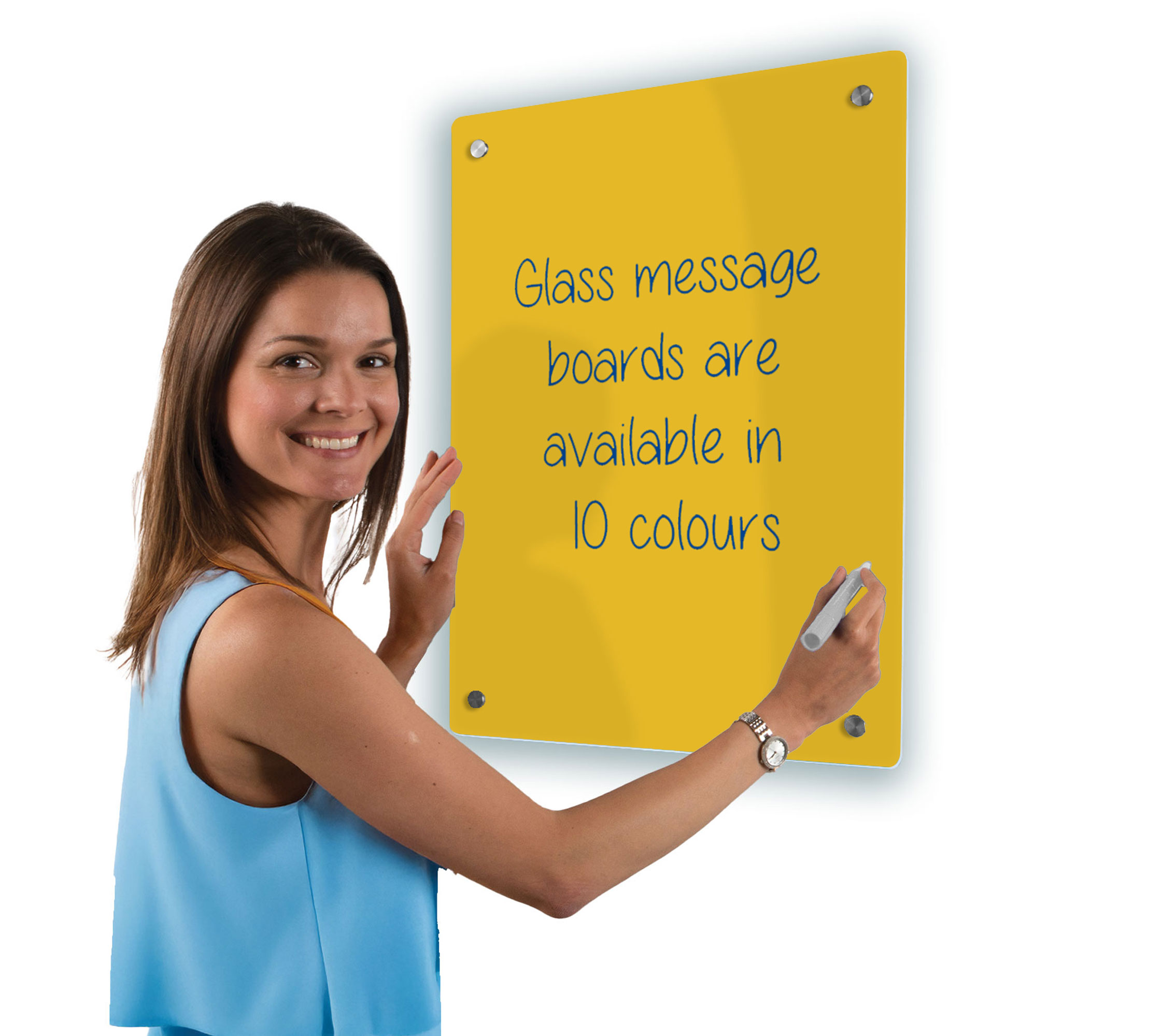 Made from toughened coloured safety glass with a steel back, these premium magnetic boards are fixed to the wall using chrome mounts which allows the board to stand slightly proud of the wall for visual impact. For use with super strength Neodymium magnets only and drywipe pens. Glass pen tray is available. *Please note; boards are a single colour, and images for representation only show shadow along the glass board.- Chrome mounts supplied