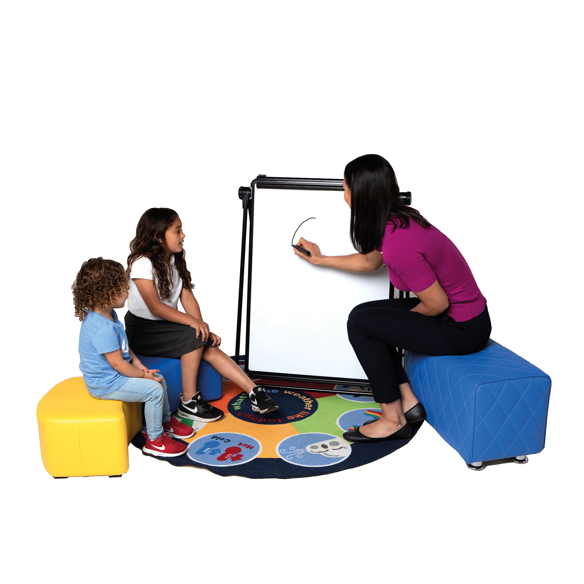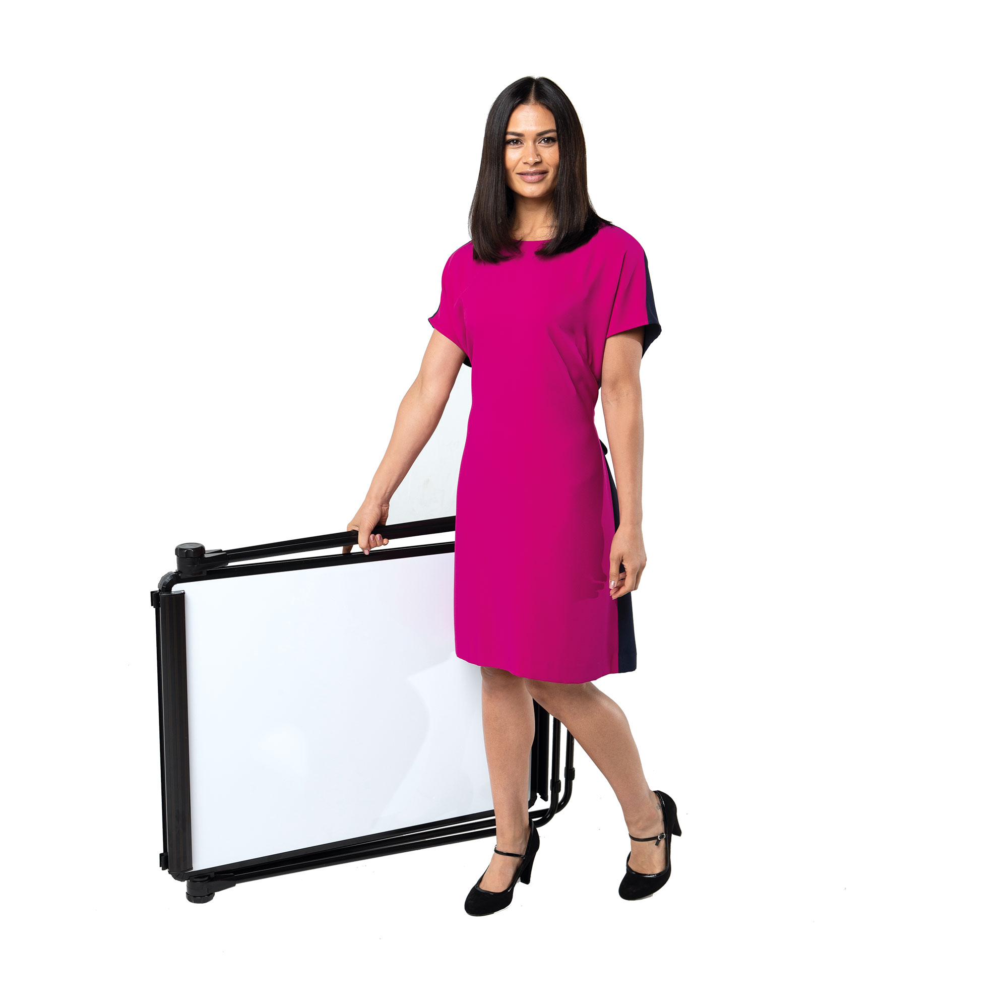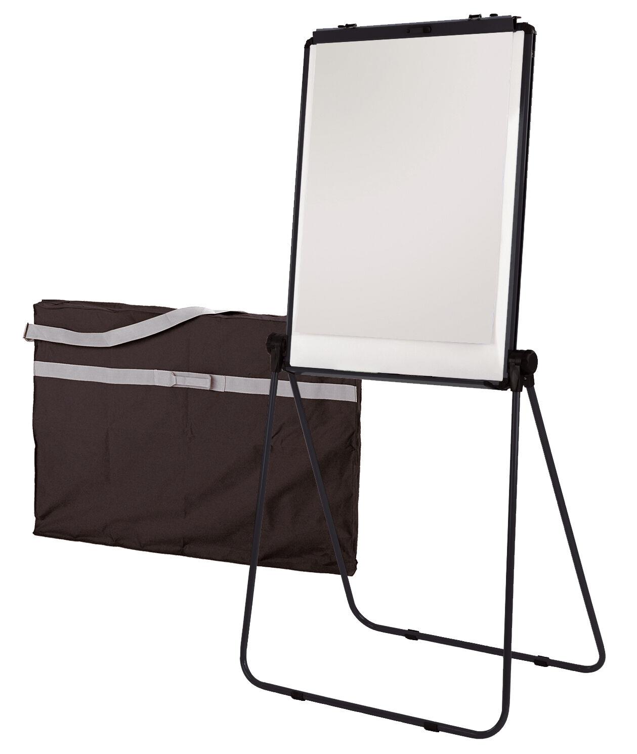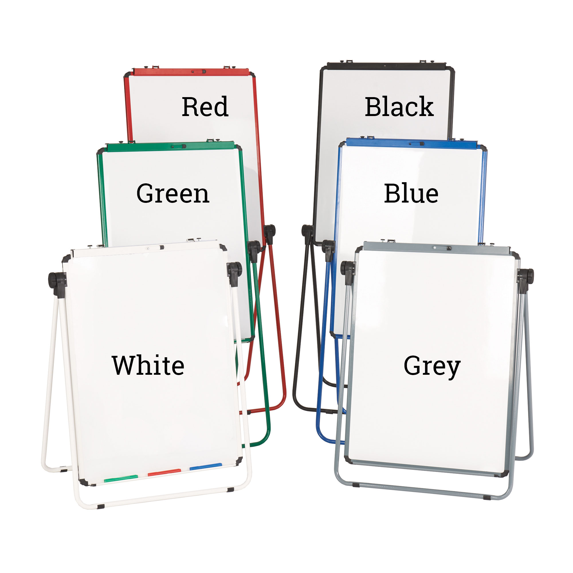 Available in 6 colours this height asjustable double sided magnetic flip chart ease can be tilted to the desired angle.Therefore easy for little ones to see and reach the whiteboard surface. As a result, they will be engaged in your lesson. The Double-Sided Magnetic Flipchart Easel can be tilted to the desired angle or laid flat to make preparing your presentation easier. The loop leg design has a foot bar. This helps to stabilise the easel when writing. The paper pad clamp is adjustable and will fit any predrilled A1 flipchart pads. The steel board surface accepts magnets. Suitable for use with drywipe pens. Optional carry bag for storage and transport.- Board size (H) 860 X (W)650mm