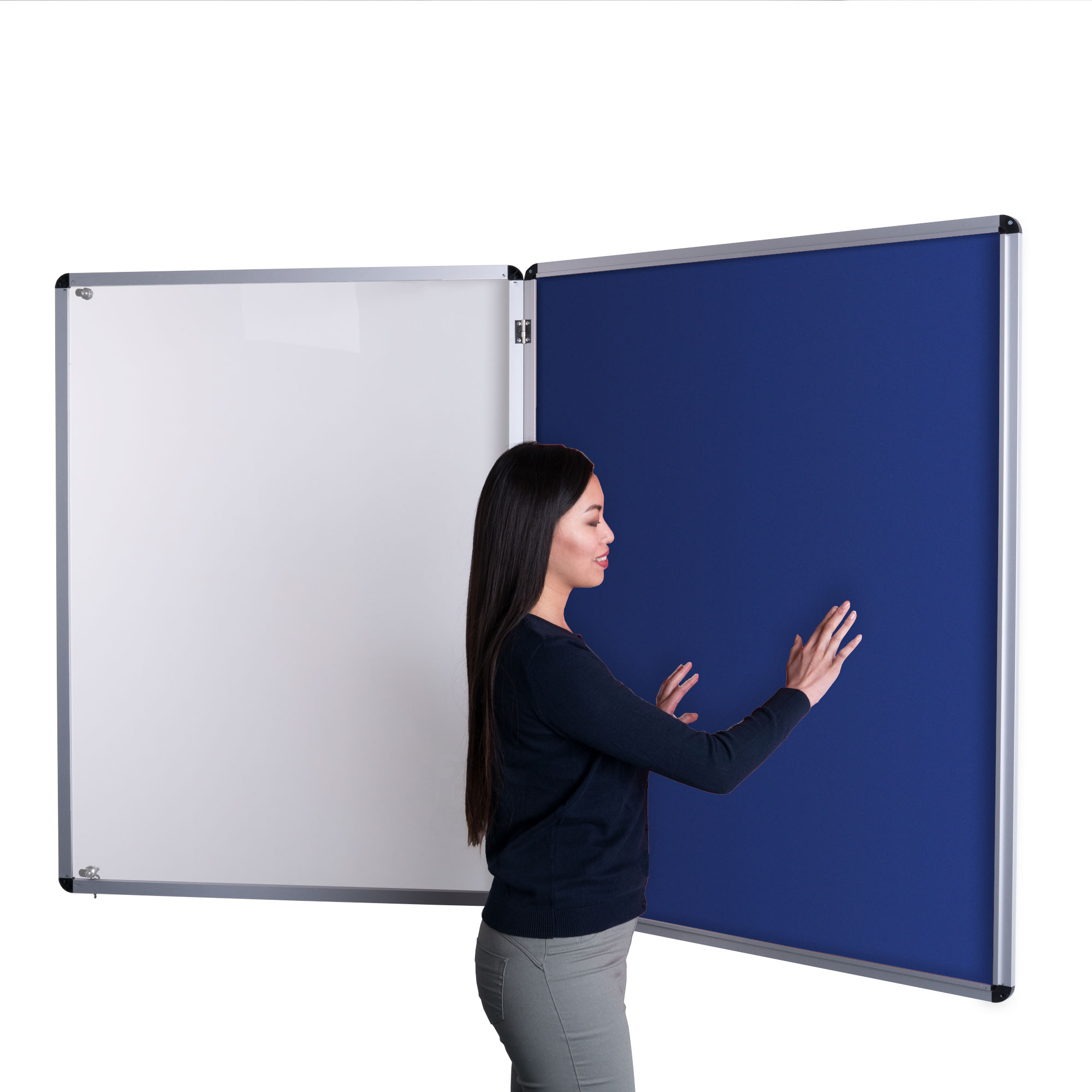 Our popular covered noticeboards are designed to prevent casual interference. Each door has 2 locks, with matching keys thus, offering easy access yet a secure solution for displaying your information. 6 sizes are available and the single door versions can be mounted portrait or landscape. The aluminium frame features rounded corners for safety and concealed corner fixings are supplied.Suitable for internal use only - these boards are not suitable for use outdoors.