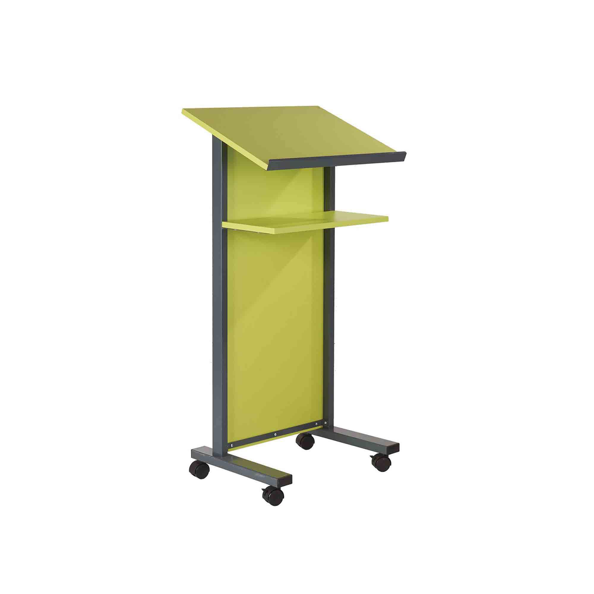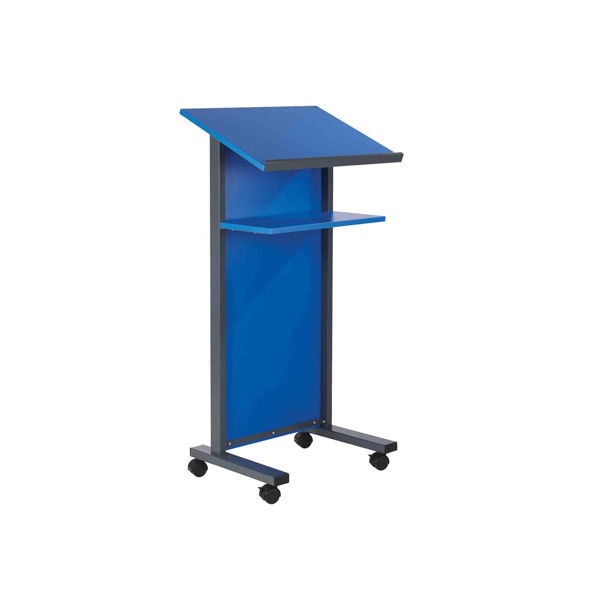 This mobile lectern is suitable for a wide range of occasions, available in multiple colour options all finished with a dark grey steel framework. Supplied with 4 castors (2 locking) for stability when in use. The angled upper shelf features a steel book rest and the lower shelf provides additional storage. This product is easy to assemble and an eye-catching addition to any presentation. Due to the lightweight nature of this product, it is not designed to be leaned on.