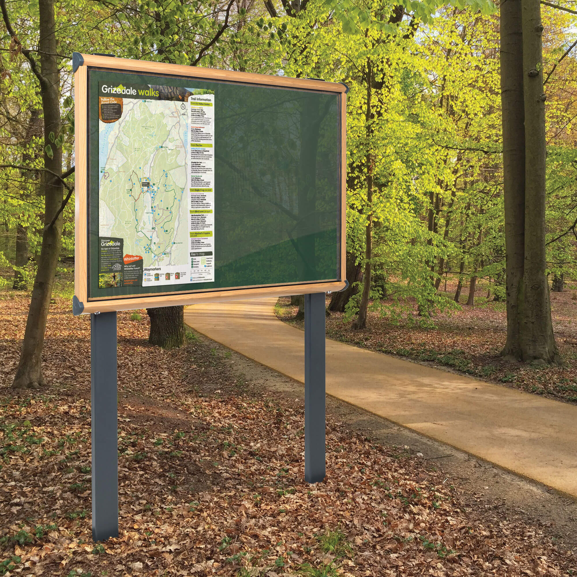 - Additional showcases are also available to create a double-sided showcase - the additional showcase can be mounted to the same pair of posts (additional fixings supplied)