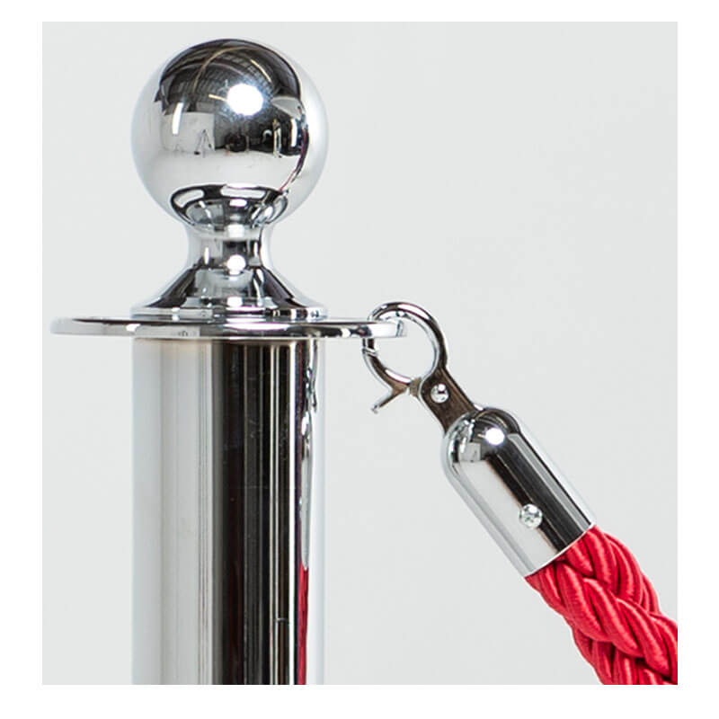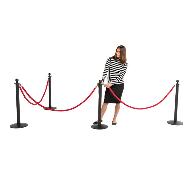 Our top quality rope and pole barrier system is sold as individual components so choose from black or chrome poles and a selection of red, blue or black ropes. The 4 way poles are 975 mm overall height and each weighs 6kg. They also feature a rubberised base. Ropes are of a twisted design for a professional appearance and measure 2 Metres. This product range is guaranteed for 3 YEARS. Pole only. Purchase our 2 metre ropes separately, for use with poles.- Poles are 975mm high