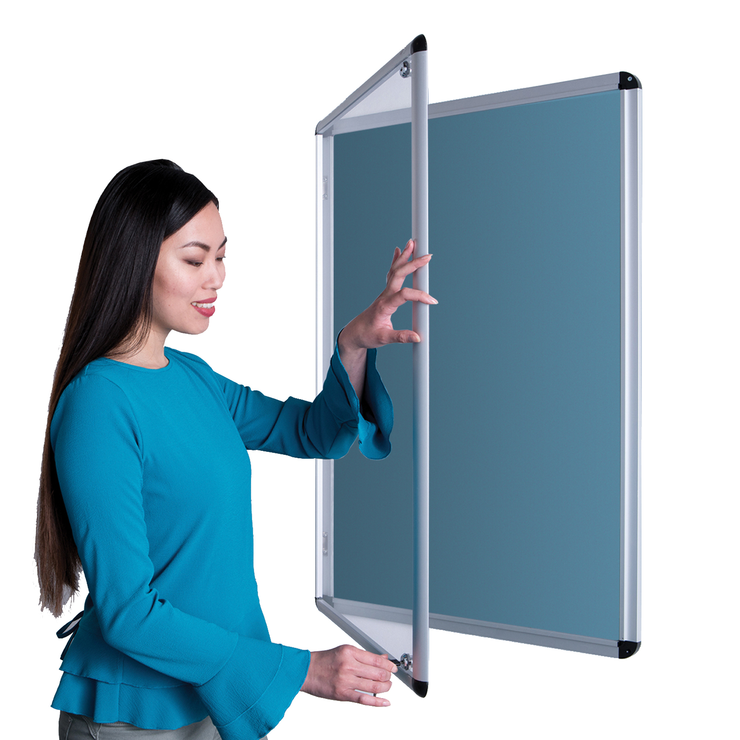 Our popular covered noticeboards are designed to prevent casual interference. Each door has 2 locks, with matching keys thus, offering easy access yet a secure solution for displaying your information. 6 sizes are available and the single door versions can be mounted portrait or landscape. The aluminium frame features rounded corners for safety and concealed corner fixings are supplied.Suitable for internal use only - these boards are not suitable for use outdoors.