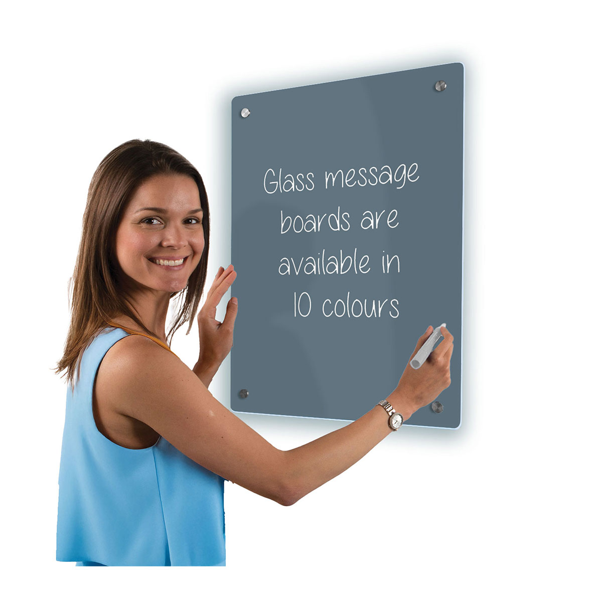 Made from toughened coloured safety glass with a steel back, these premium magnetic boards are fixed to the wall using chrome mounts which allows the board to stand slightly proud of the wall for visual impact. For use with super strength Neodymium magnets only and drywipe pens. Glass pen tray is available. *Please note; boards are a single colour, and images for representation only show shadow along the glass board.- Chrome mounts supplied