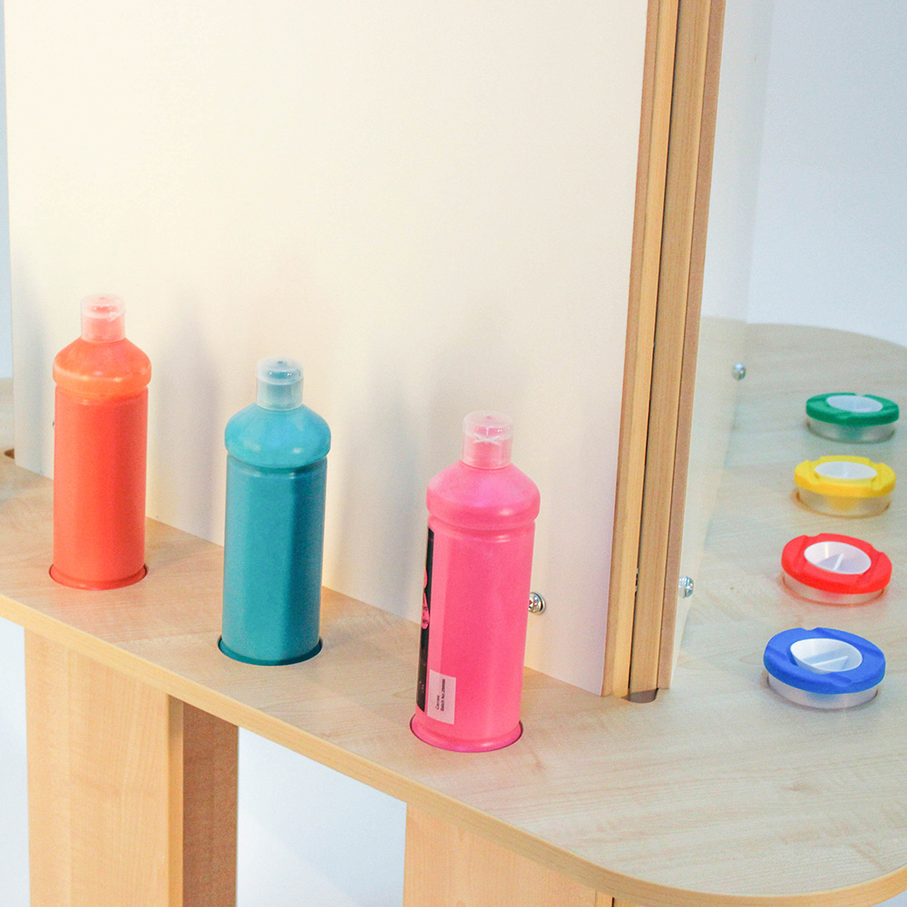 - Paint pot holder with paint pots included & chalk ledges aid budding artists
