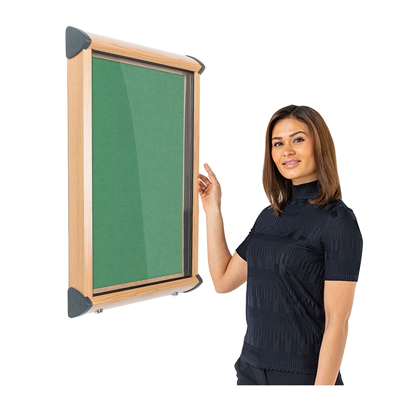 Firewall® Interior Showcase Noticeboard Fire-Resistant with Wood Effect Aluminium Frame