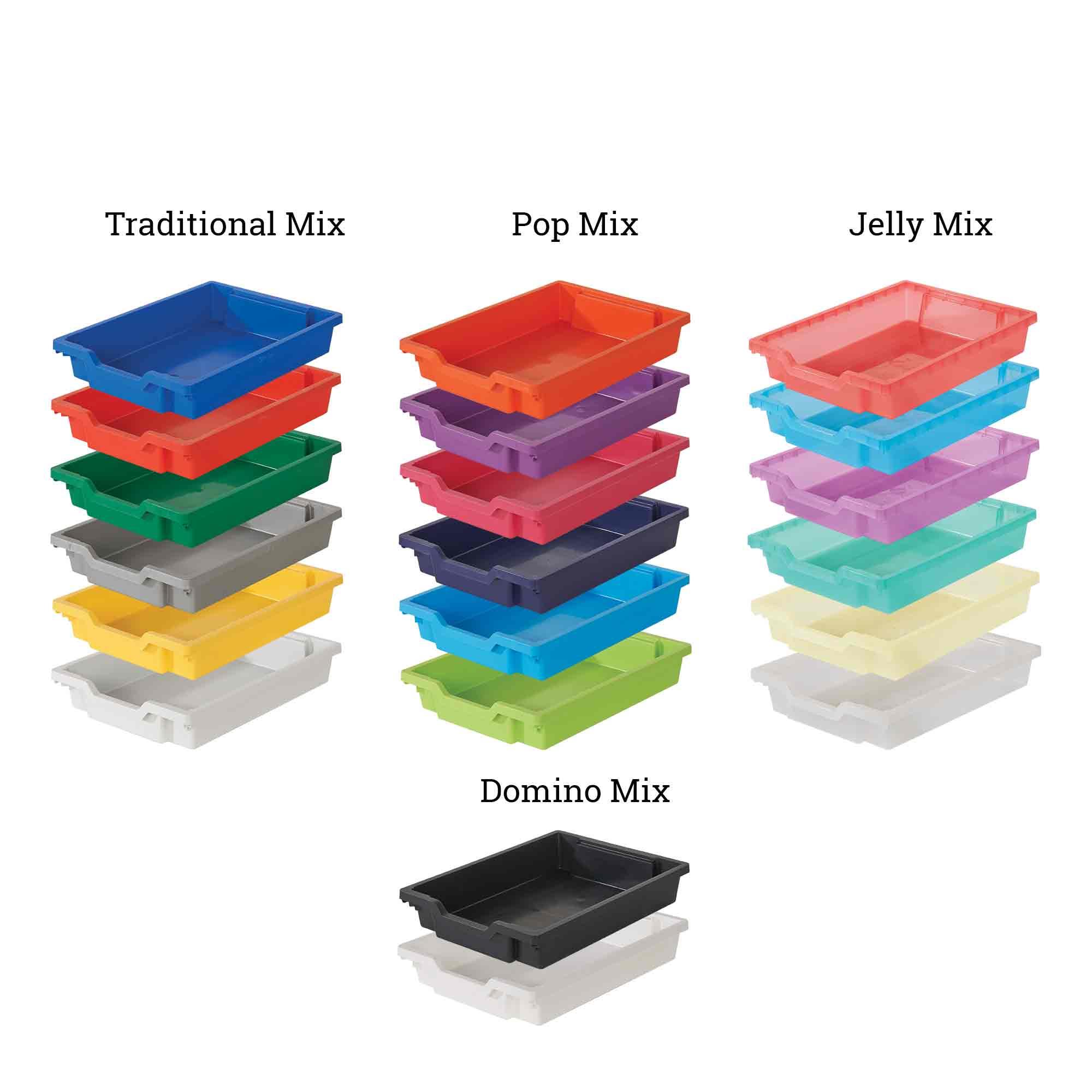 We only use genuine Grantnell trays and runners in our Colourbox® production. The cabinets come in a choice of 8 colours plus Beech and Maple. As standard this item comes with translucent trays but other colour options are available please contact us for further details . Colourbox Shallow Tray Storage uses top-quality 18mm MFC with colour matched ABS edging. Mix and match colours and unit sizes with other items in the Colourbox range. Each finished Colourbox item is guaranteed for 10 years in normal use; so you can be sure your furniture will stand the test of time and as a result, it will still look good for years to come.Delivery date to be confirmed upon receipt of order.