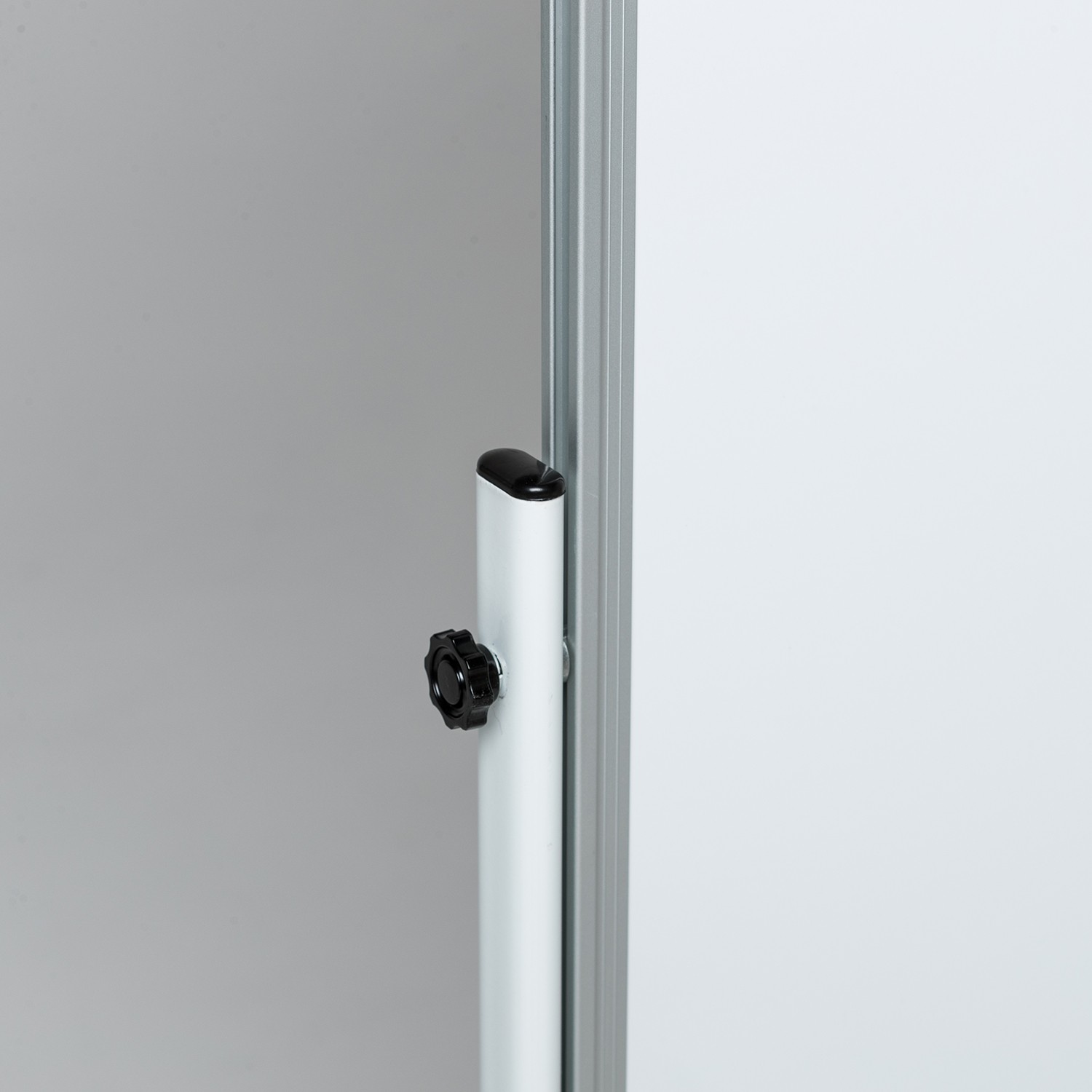 Offering both a pinboard and whiteboard this versatile, height-adjustable information board, is available in 2 popular sizes, 120x70cms and 100x100cms. The whiteboard surface accepts magnets and an adjustable flip pad clamp is supplied for use with A1 flipchart pads. The powder-coated steel frame has 4 castors, 2 of which are lockable.- Double sided, pinboard on one side with whiteboard on reverse