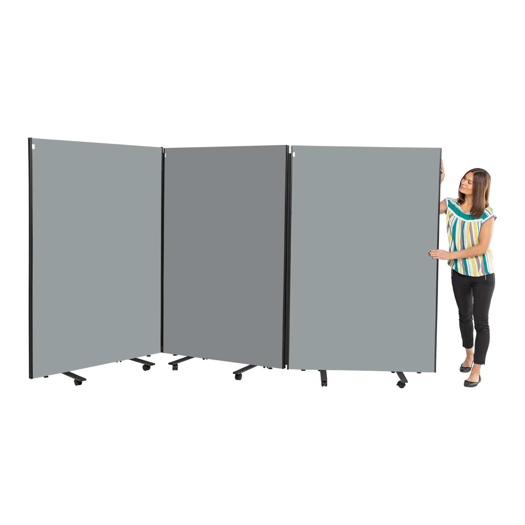 A popular variation of our Wonderwall Divider /Partition screens. The three panels link together when in use and the flexible hinges can be removed to facilitate compact storage. This product is supplied with mobile (locking) wheel assemblies so the three panels can be positioned in a straight line if required. Available in a range of 9 fire tested woven cloth fabrics with a choice of black or grey frame. 3 height versions are available. All panels are manufactured to FIRA standard. This item is made to order and therefore non-returnable.- 9 woven cloth colours to choose from