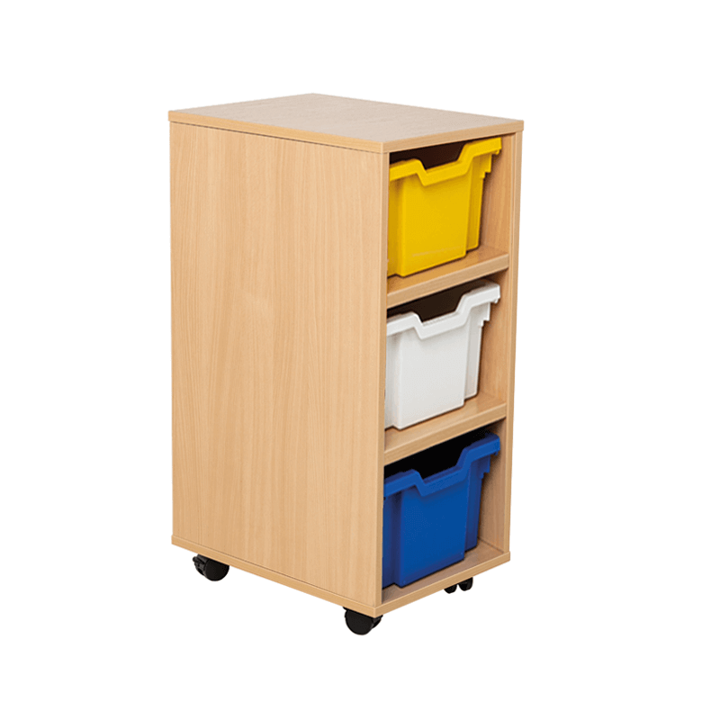 The units are available in a selection of finishes, including Beech, Maple, White, or Light Grey* (*please specify your colour choice by email). They are compatible with a wide range of sizes and coloured Gratnells educational resource trays. Lockable castors ensure the unit remains safe and in a locked position.