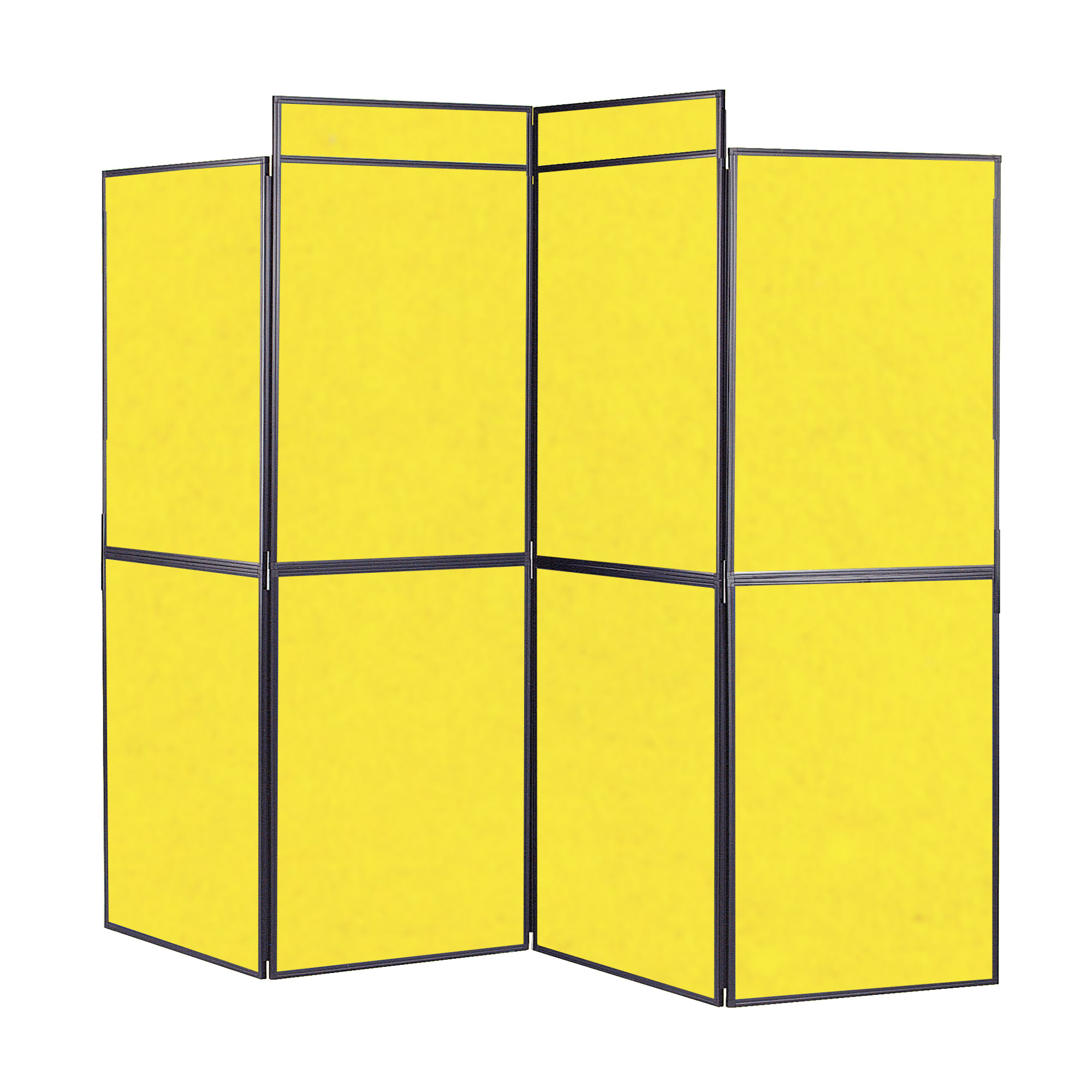 These larger versions of our folding panel systems have an overall height of 2000mm (excluding the header panel(s) compared to the regular versions which are 1800mm. The panels are covered in loop nylon fabric allowing quick and easy display using pins or with self adhesive hook fasteners (a pack of 100 Busyfix coins are supplied to get you started)Kits are available in 6, 7 or 8 panel configurations as illustrated and are supplied complete with headers and carry bag(s). Frame available in black or grey. Overall height with header(s) 2200mm. See illustrations for overall sizes and weights.
