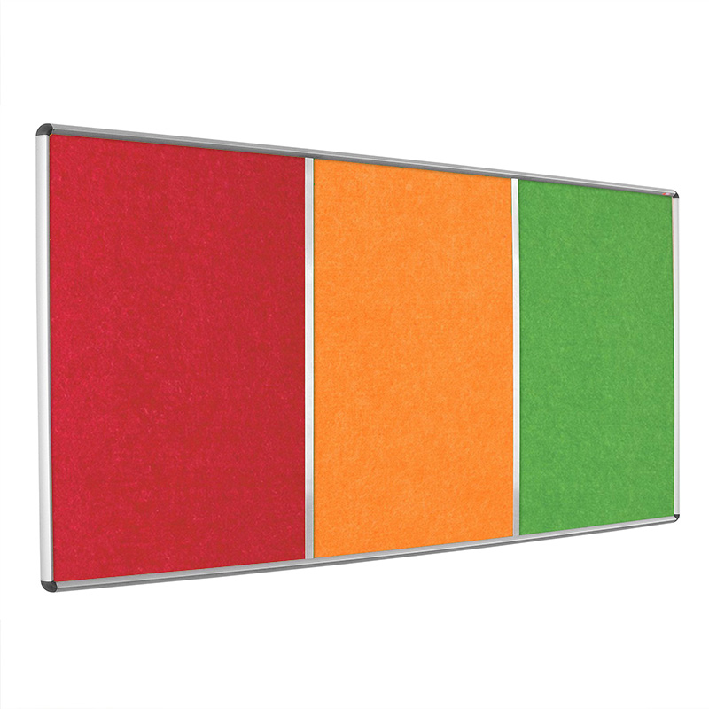 Multi-Bank Eco-Colour Noticeboard, with separate pinnable areas, that can be specified with individual colours. Combine with either an Aluminium or White powder-coated frame.