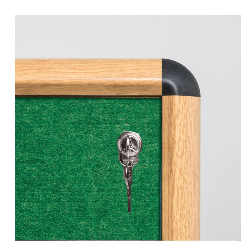 These lockable pin boards are available in five sizes including two double door units across a selection of six board colours. Single door units can be mounted with hinge to side, top or bottom but does not include support stays. Concealed through the corner mounting and all fixings provided.