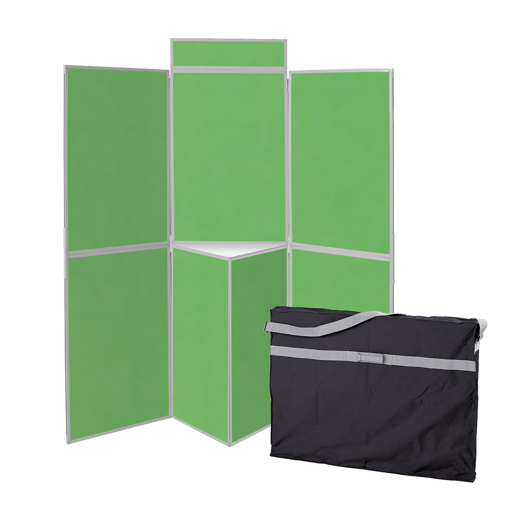 Everything you need for a larger temporary exhibition for displaying information, art, classwork, tradeshow or promotions. A portable and lightweight Folding 7 Panel Display System covered in loop nylon fabric allowing quick and easy display using pins or adhesive hook fasteners®. A header panel is also provided. 2 panels fit together in the bottom centre panel in a triangular form to provide a shelf plinth. Easy to put up and take down, a carry bag is included for protection, transporting and storing your display system.Supplied with a pack of 100 adhesive hook fasteners (Busyfix®) to get you started.