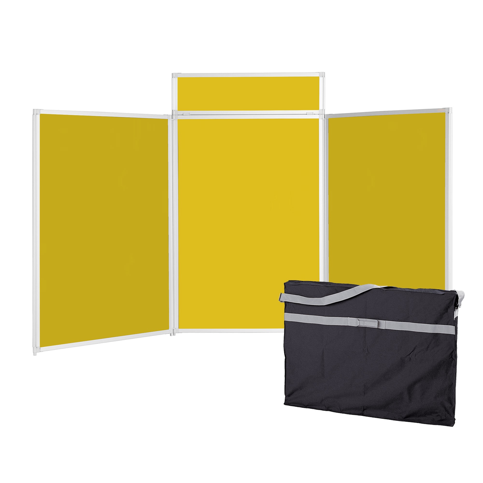 Robust aluminium framed display panels with interlocking gear hinges provides a sleek and professional display. Perfect for your class presentation, exhibition or information stand. The panels are covered with loop nylon fabric allowing quick and easy display using pins. Easy to put up and take down, a carry bag is included for protection, transporting and storing your display system.- Dimensions H x W (mm) All 3 panels: 1000 x 700. Header Panel: 200 x 700. Overall Size: 1200 x 2100. Folds down to (H x W) 1000x700