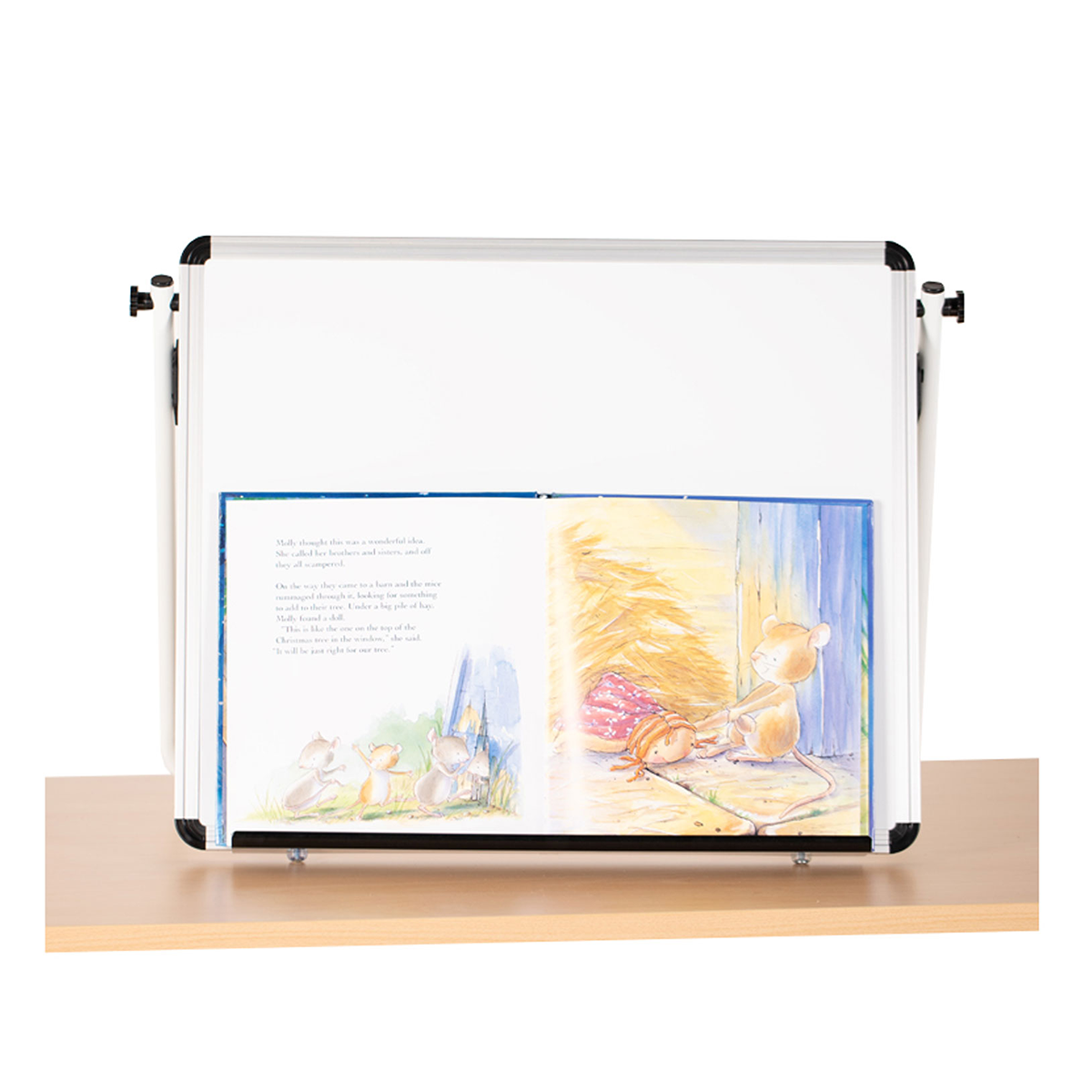 Big Book Desk easel is manufactured to be sturdy and lightweight. Easel comes with a full width support ledge for either a book or used as a pen tray. Designed with aluminium frame and drywipe surface that accepts magnets. This easel is perfect for all educational environments.
