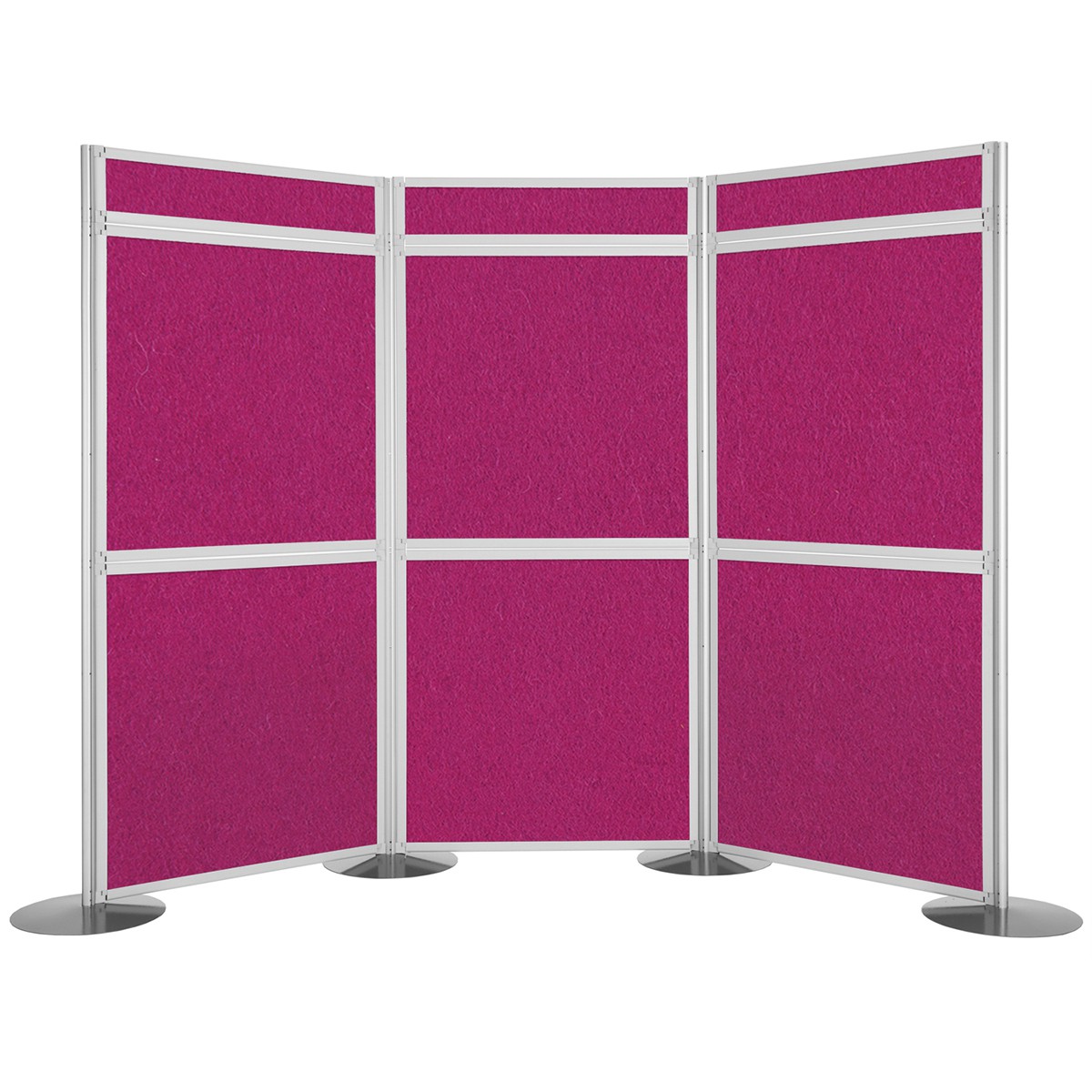 The panels easily clip onto specially designed four-way poles with circular steel bases and lock into position, preventing any unintentional movement. the four-way pole design allows panels to connect at right angles offering greater flexibility in your configuration choices.