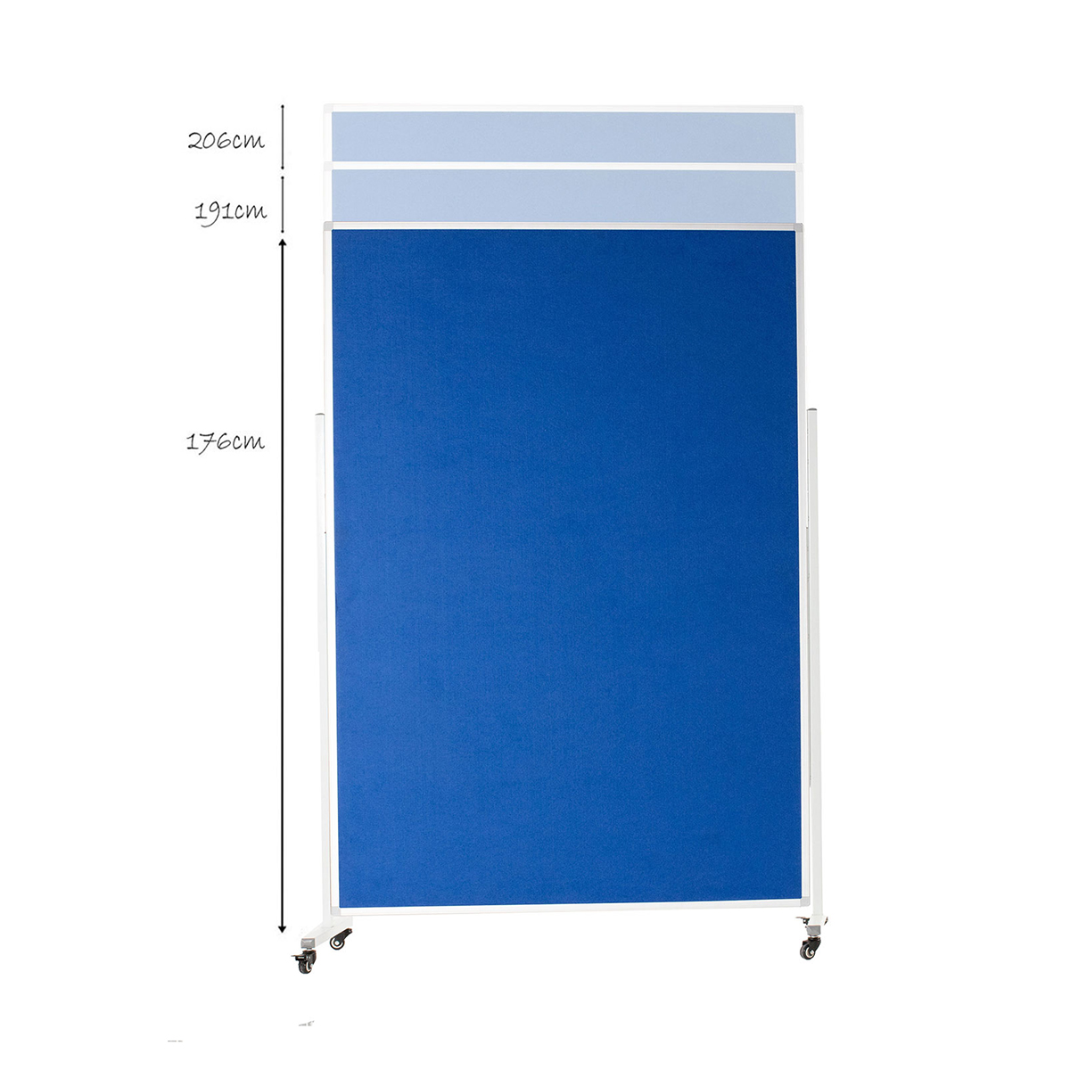 The double sided felt surface is compatible with standard office pins and staples. Additionally, the lockable caster wheels allow for easy mobility and can be secured in place during use.