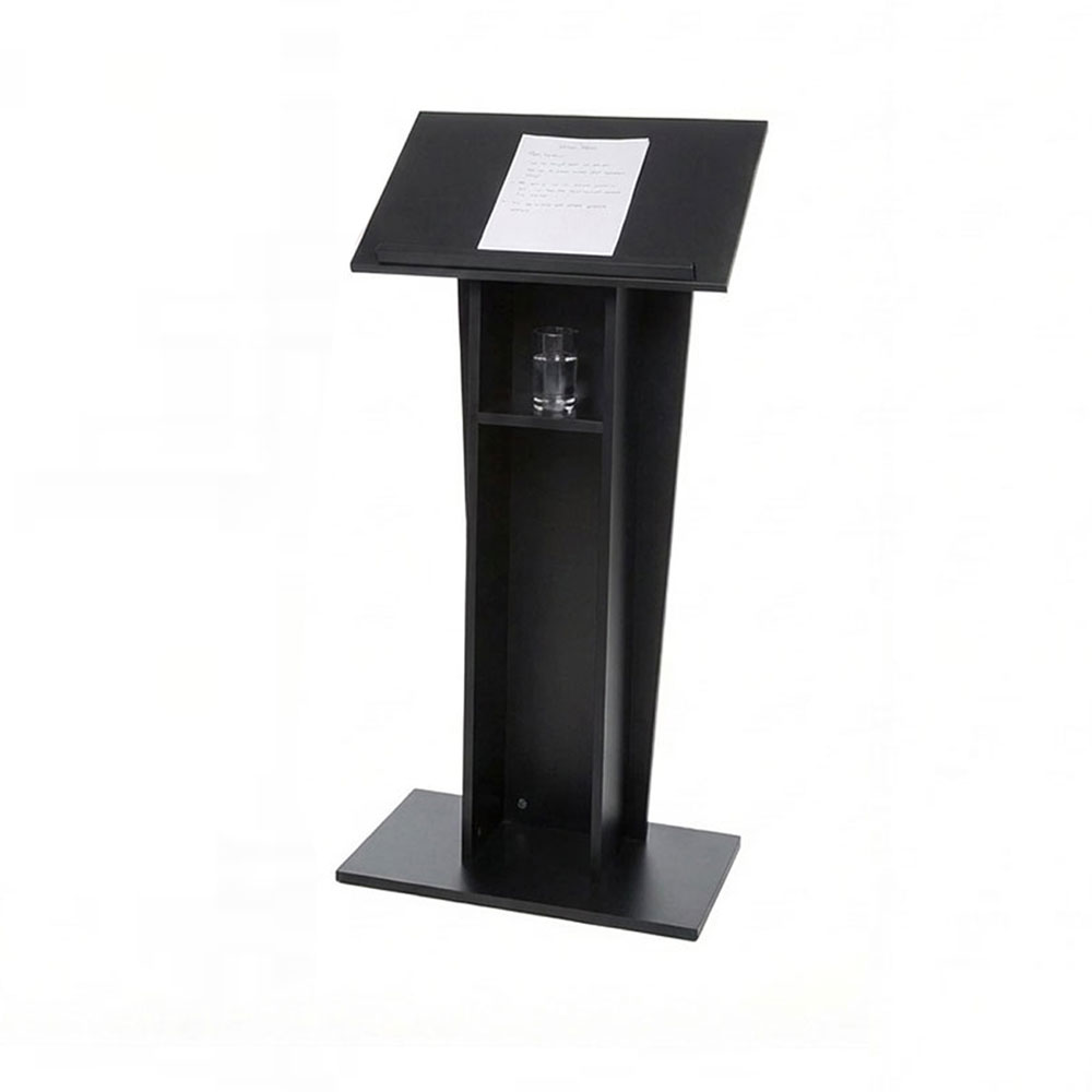 This elegant lectern with a black, maple, or oak MFC finish is designed to be the centrepiece of any presentation, speech, or event. The angled platform has a ledge to support a laptop, tablet, or upper notes and a discreet shelf for extras. A contemporary, yet functional piece of furniture, which will add a touch of class to your next presentation, whether it be a conference room, church, or auditorium.