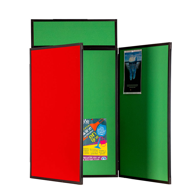 Our Table Top Folding Display Systems will enable you to set up your table top display in minutes providing a smart backdrop for your class presentation, exhibition or information stand. The panels are covered with loop nylon fabric allowing quick and easy display using pins. Easy to put up and take down, a carry bag is included for protection, transporting and storing your display system. Can be used with or without the header panel.