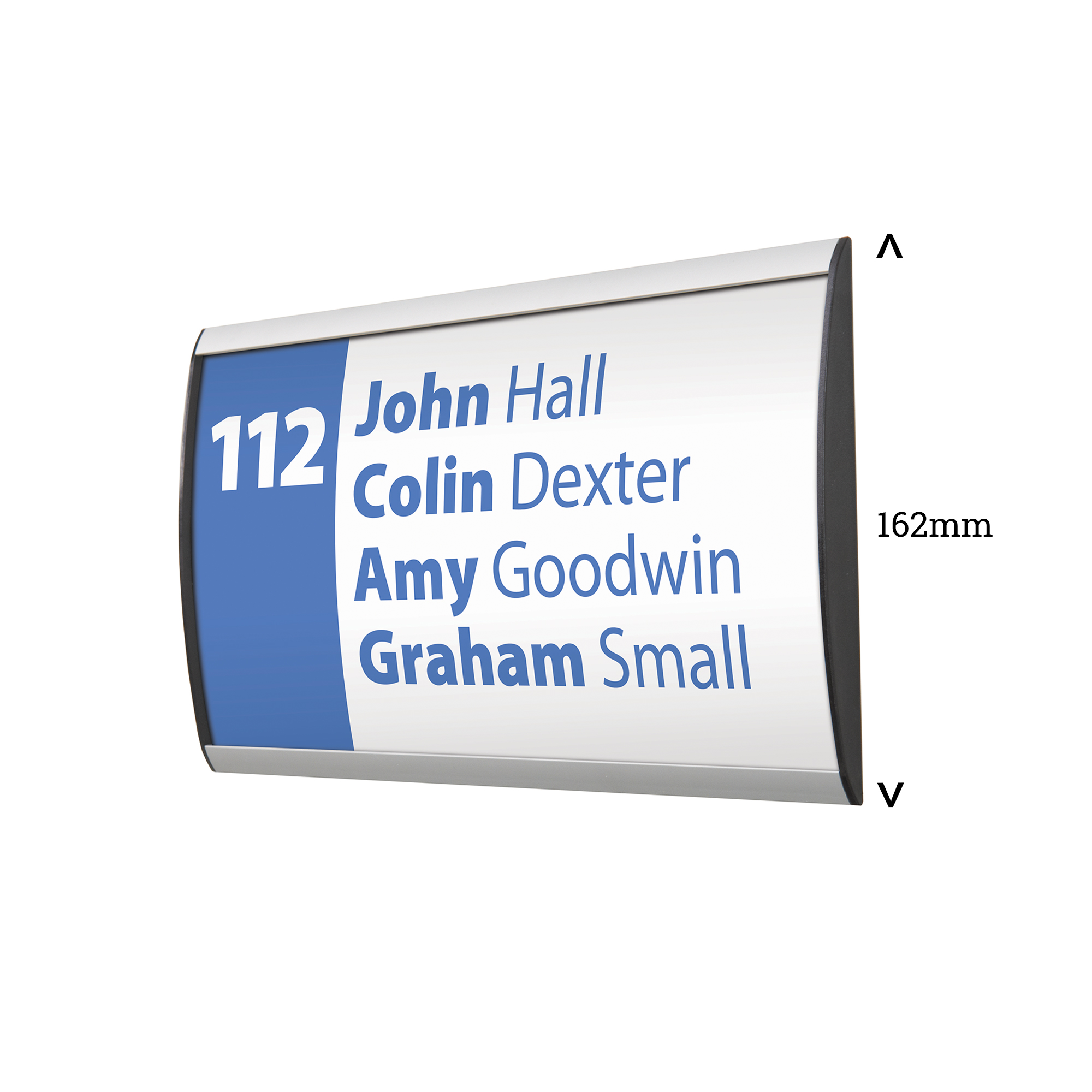 A Stylish wall signage system designed to take printed paper inserts. The aluminium extrusion has an attractive curved profile with matching plastic end caps. Available in 28 sizes and 4 depths, 68mm, 90mm, 120mm and 162mm for maximum flexibility. Printed inserts are easy to install and change using the suction tool provided to remove the plastic lens. Each wall sign is provided with self-adhesive backing for easy installation.- Available in 4 heights and a range of different lengths