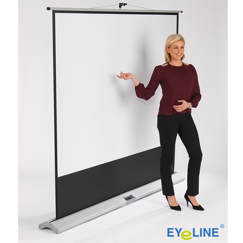 Our superior floor screen is attractively designed with a unique base that does not require stabiliser feet. There is a storage space for the telescopic screen post under the case and an integral carrying handle. The cloth is also of a superior quality providing a flat screen surface with crisp black borders for an unrivaled picture quality. Available in widescreen 16:9, 16:10 and 4;3 video formats.- Format: 16:9