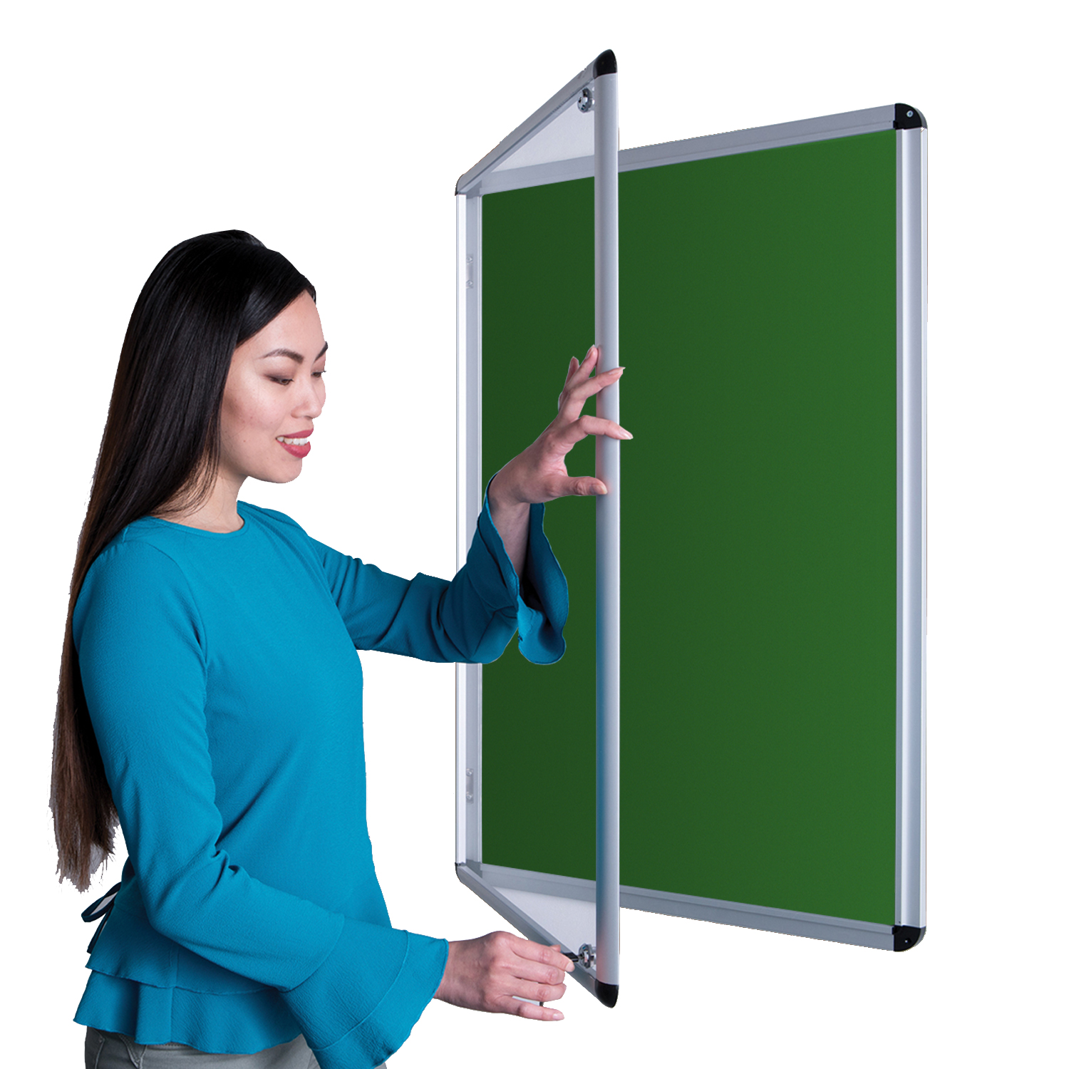 Our popular covered noticeboards are designed to prevent casual interference. Each door has 2 locks, with matching keys thus, offering easy access yet a secure solution for displaying your information. 6 sizes are available and the single door versions can be mounted portrait or landscape. The aluminium frame features rounded corners for safety and concealed corner fixings are supplied.Suitable for internal use only - these boards are not suitable for use outdoors.