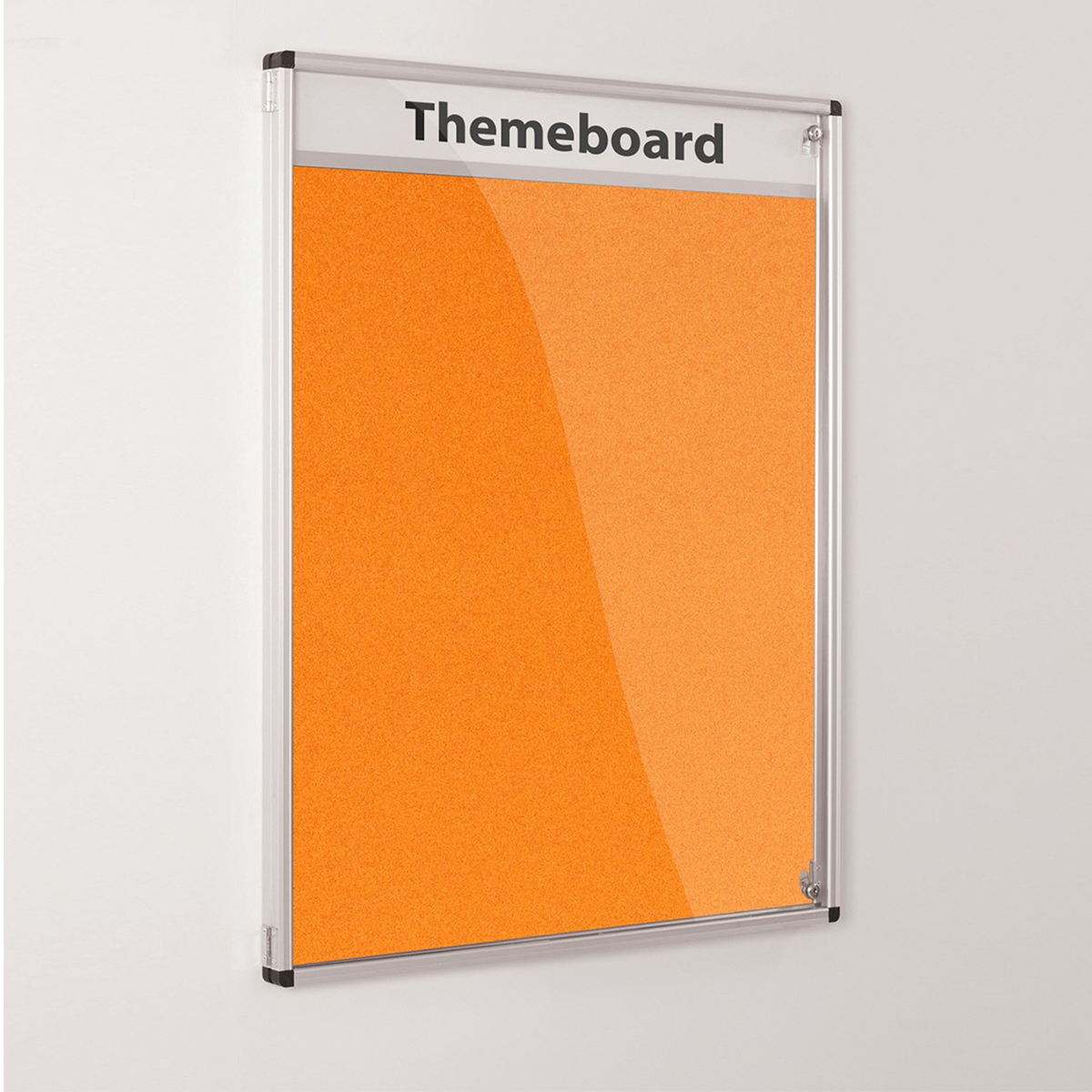 Our Themeboard range of lockable noticeboards features a 200mm deep dry-wipe whiteboard header, allowing you to write messages or apply self-adhesive graphics to represent your club name, department, or activity. Ideal for school for school displays.