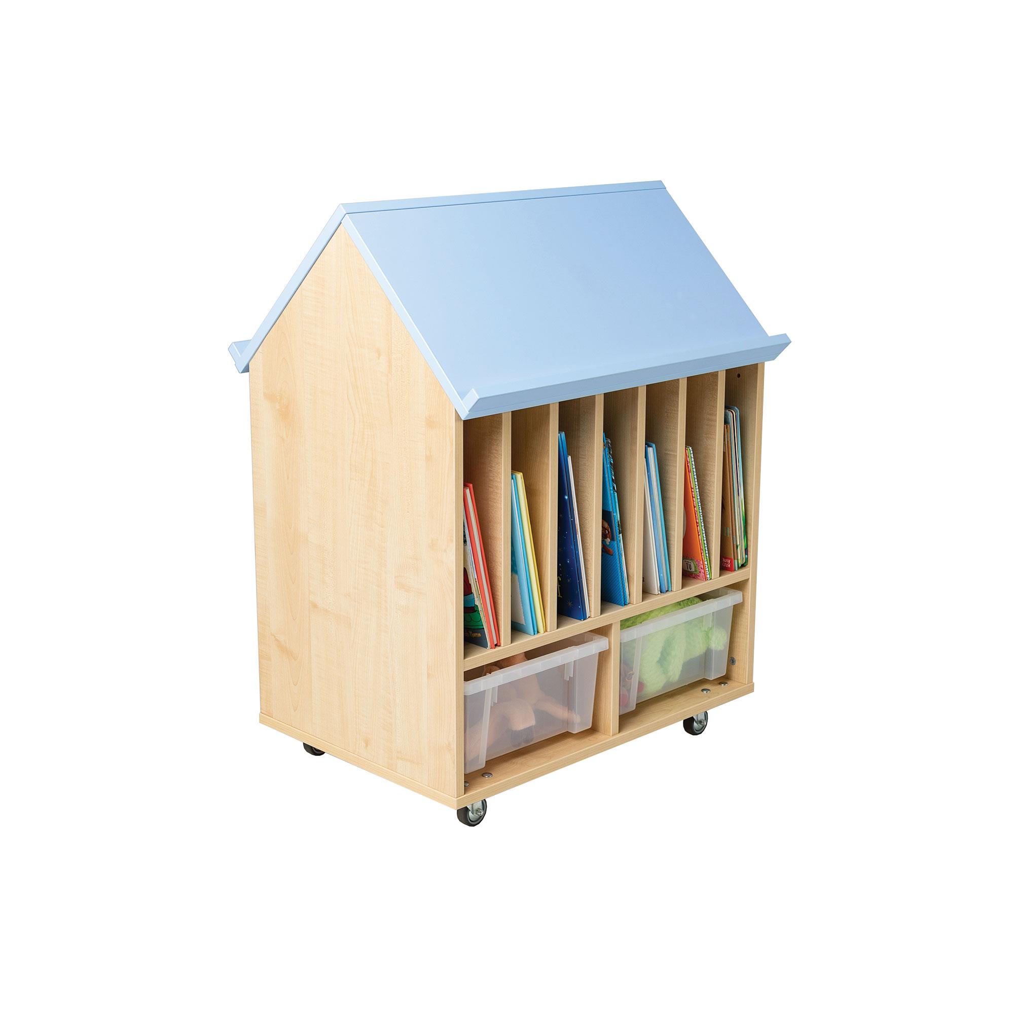 - Designed to take big books, our signature Caribbean blue roof has 2 book ledges so big books can be displayed open